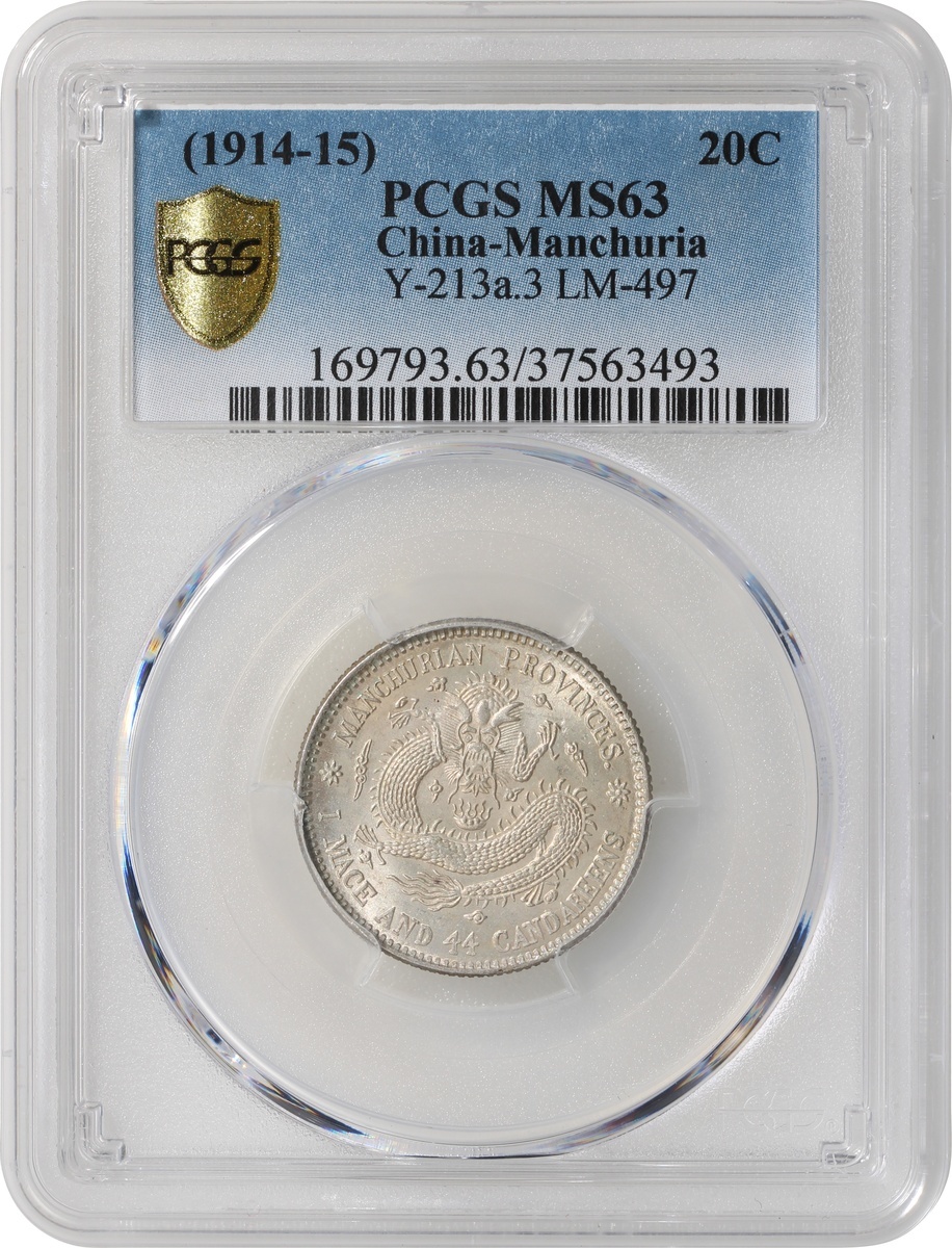 Manchuria Province, silver 20 cents, Xuantong Yuan Bao, (1914-15), (Y-213a.3, LM-497), PCGS MS63. #37563493