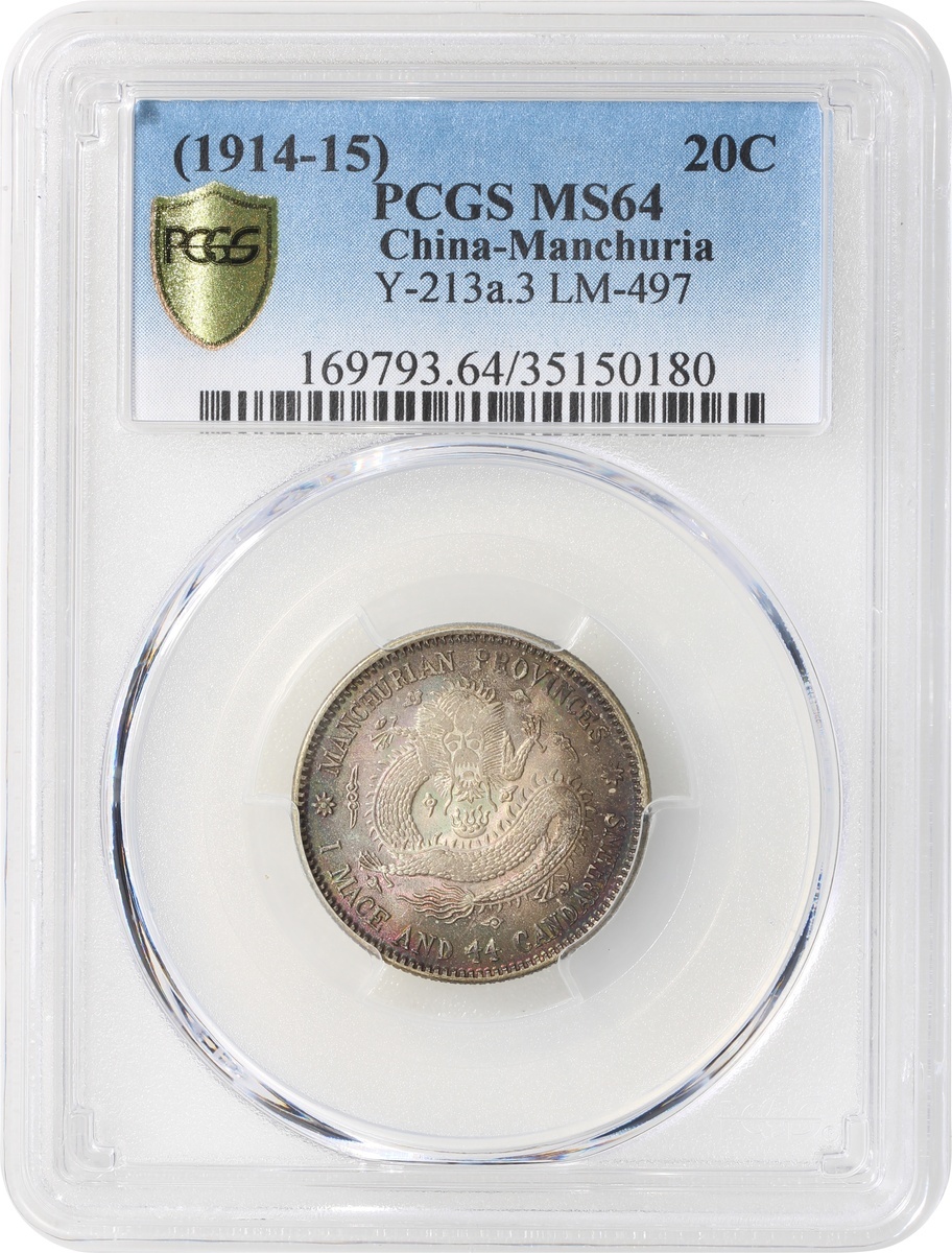 Manchuria Province, silver 20 cents, Xuantong Yuan Bao, (1914-15), (Y-213a.3, LM-497), PCGS MS64. #35150180