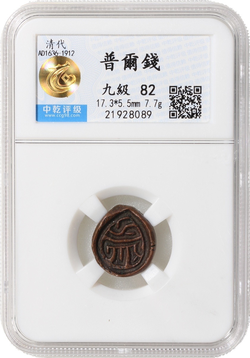 清代新疆準噶爾普爾錢幣,中乾評級XF82,編號21928089,羅德斯舊藏