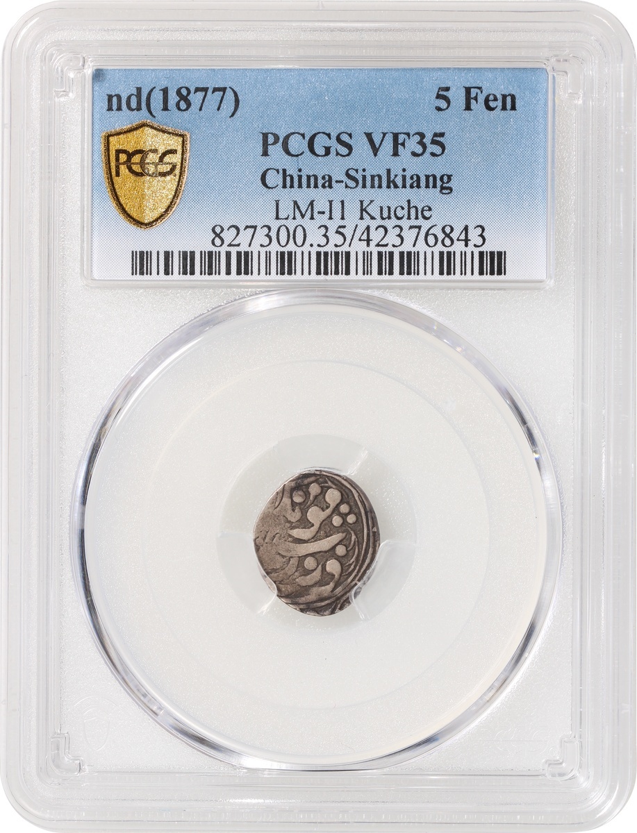 Sinkiang Province, silver 5 fen, no date (1877), (LM-11 Kuche), PCGS VF35, #42376843