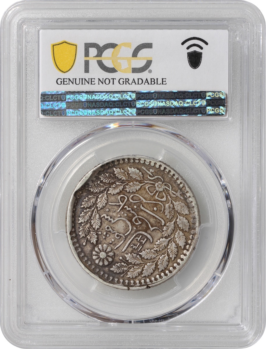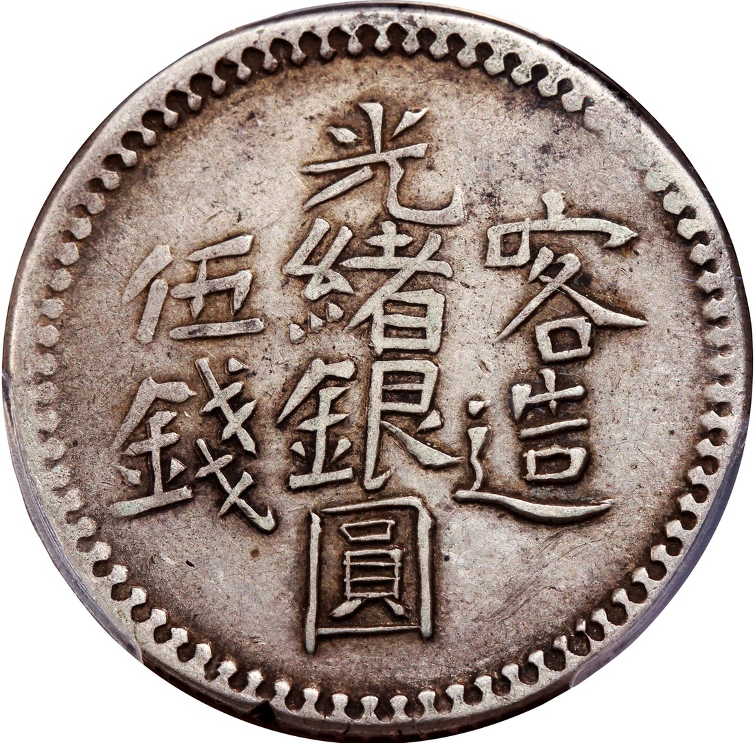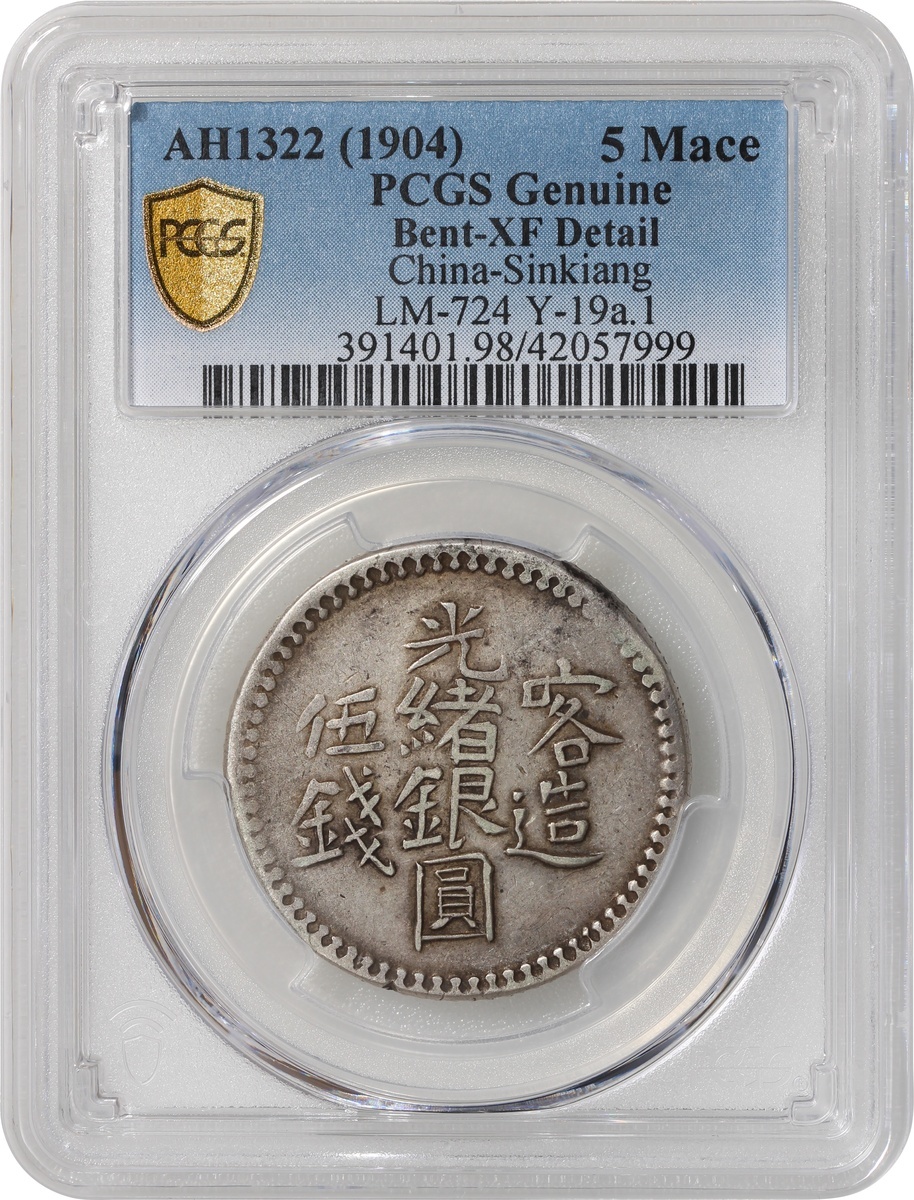 新疆光緒銀圓伍錢AH1322,PCGS XF,彎曲,編號42057999