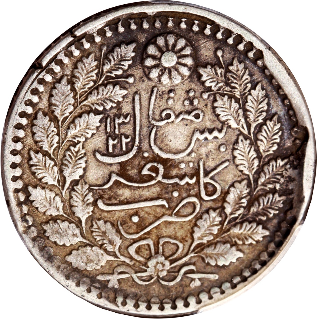 Sinkiang Province, silver 5 mace, AH1322(1904), Guangxu Yinyuan, Kashgar mint, (LM-724), PCGS XF detail, bent. #42057999