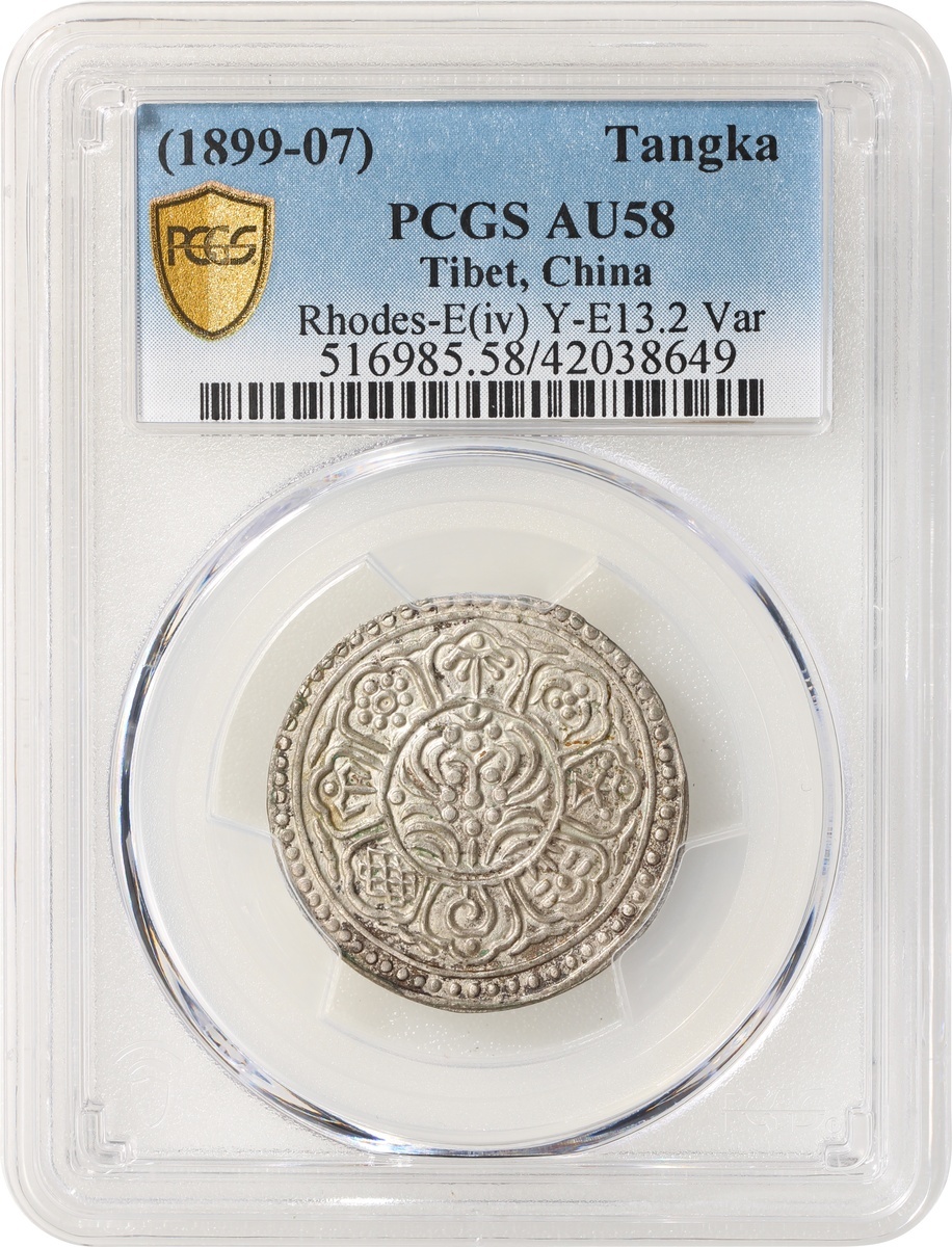 Tibet, silver tangka, 1899-1907, (Rhodes-E(iv), Y-E13.2), PCGS AU58, #42038649.