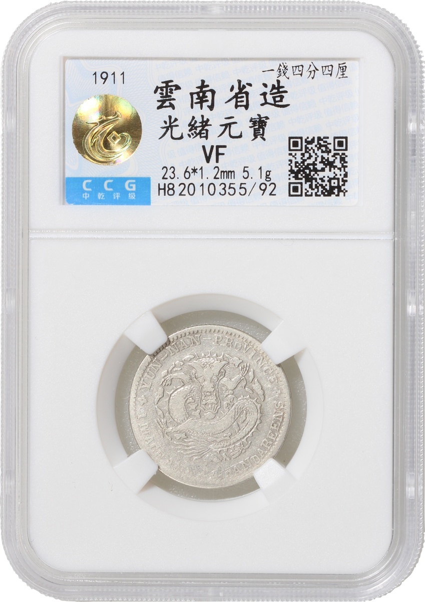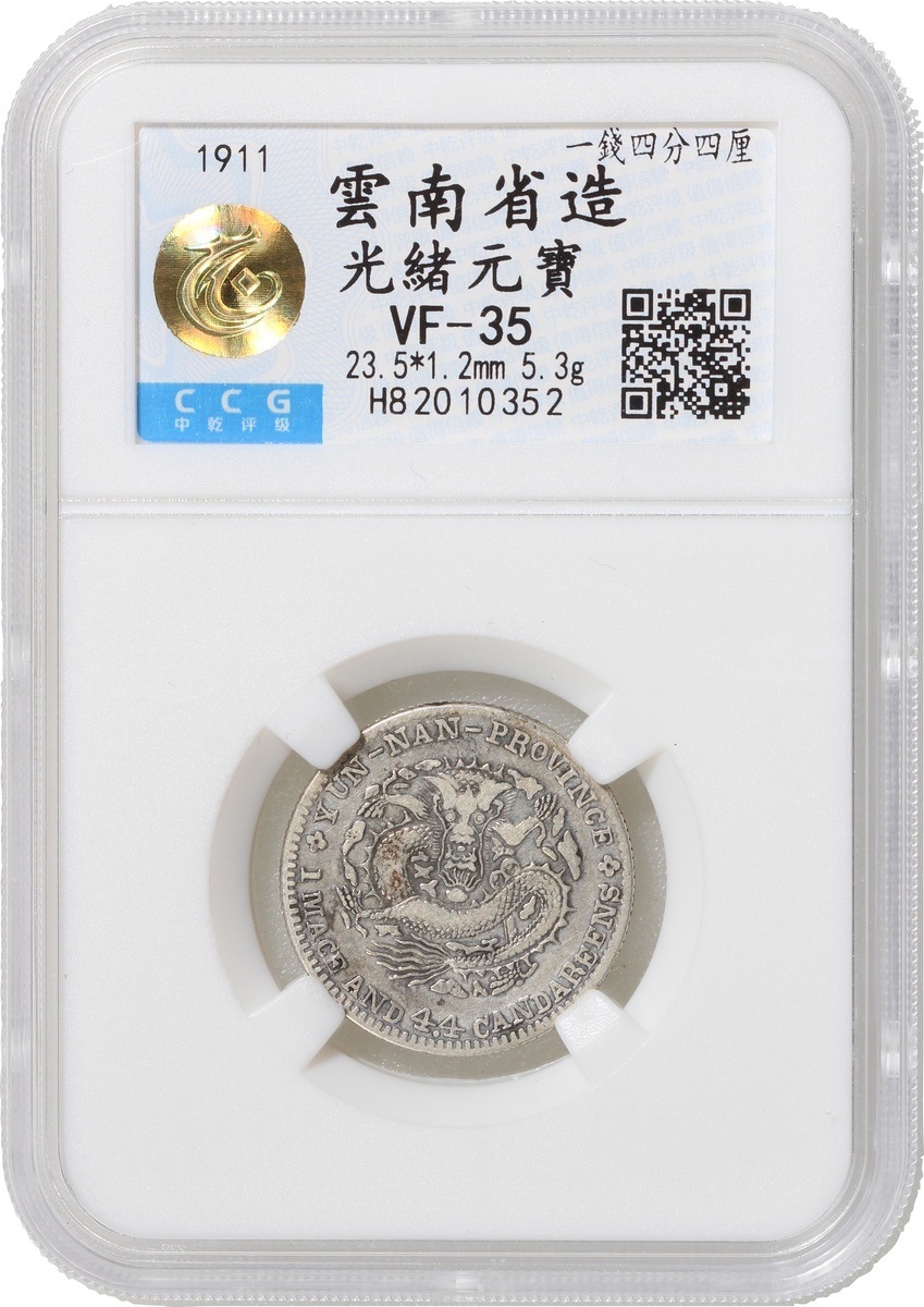 清代雲南光緒一錢四分四釐一組2枚,新龍,中乾評級VF35及VF