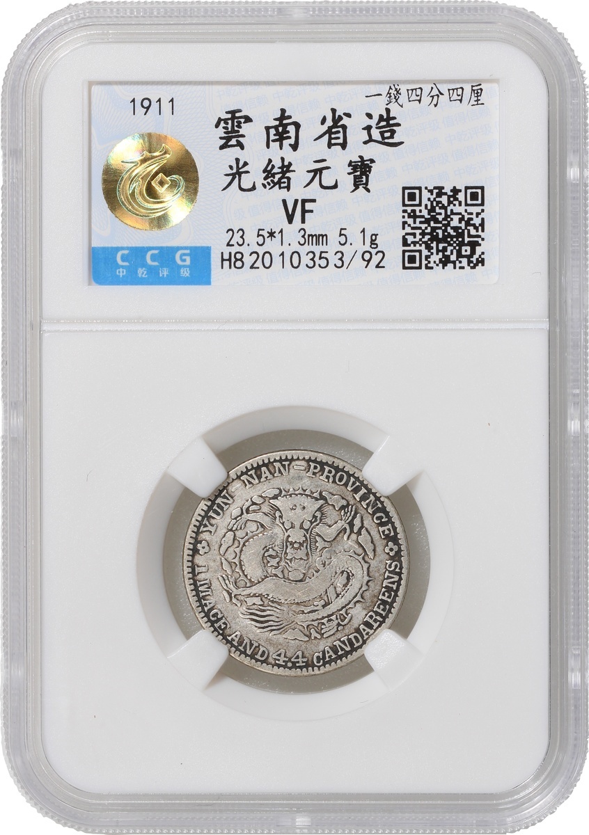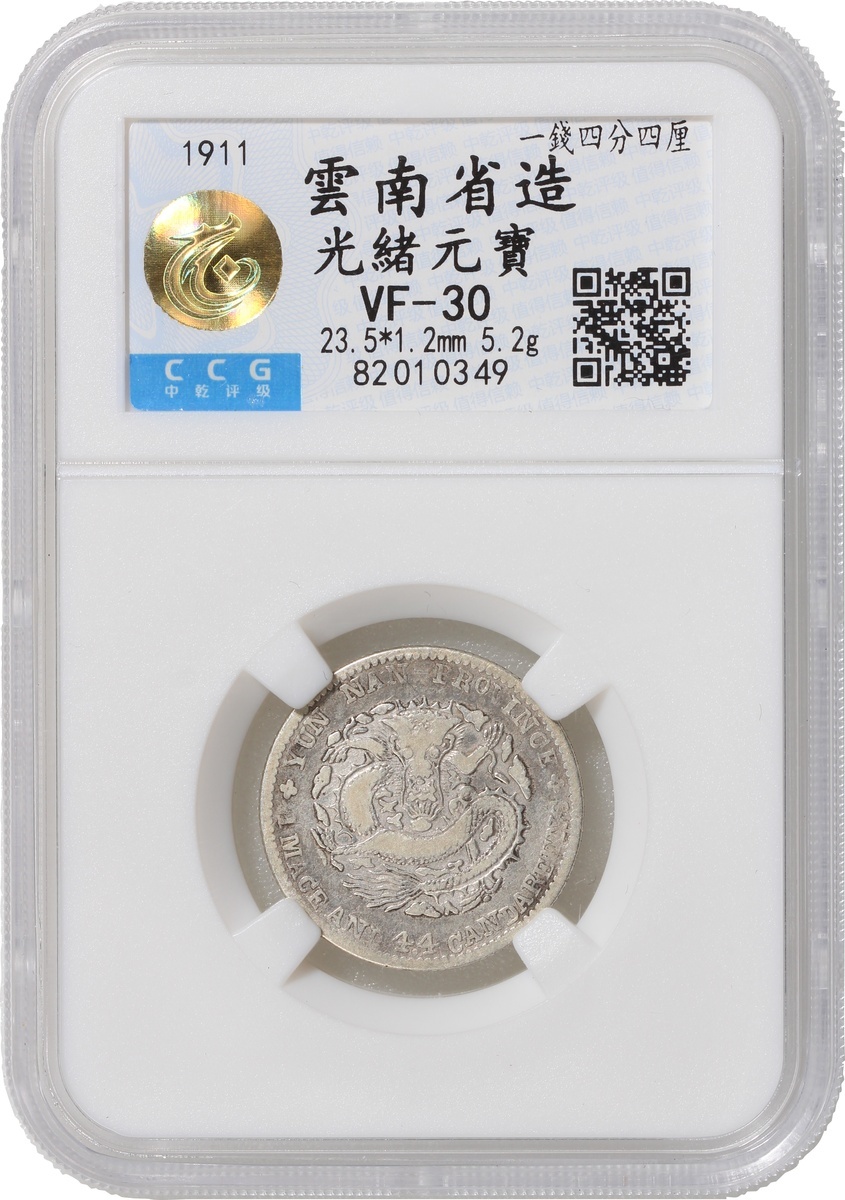 清代雲南光緒一錢四分四釐一組2枚,新龍,中乾評級VF30及VF