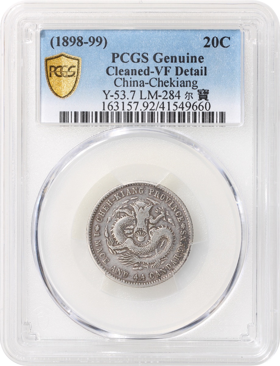 Chekiang Province, silver 20 cents, Guangxu Yuan Bao, (LM-284), PCGS VF Detail, cleaned. #41549660