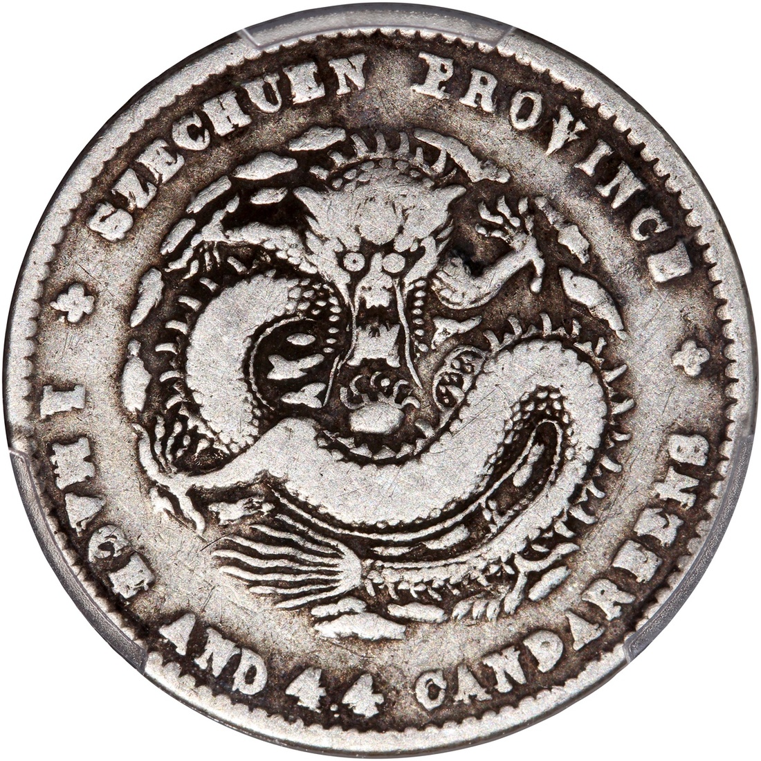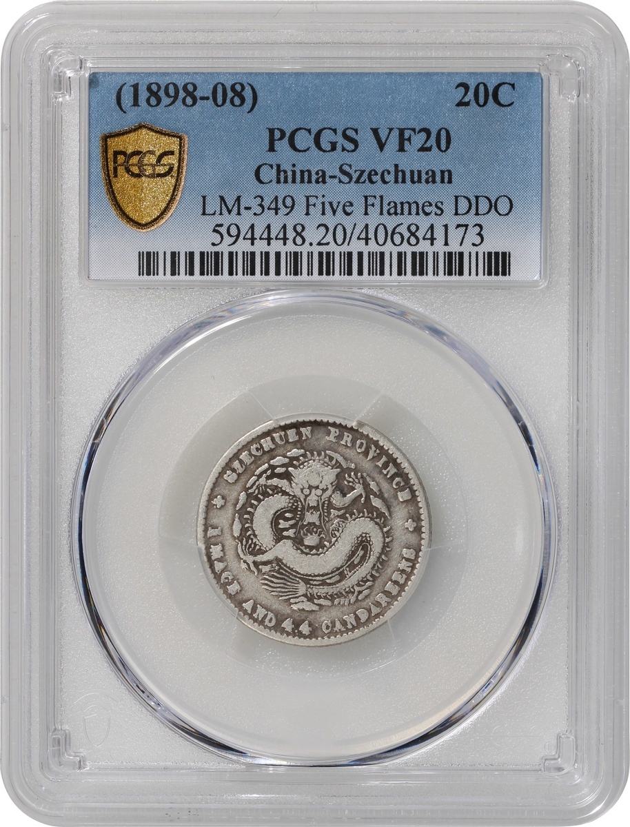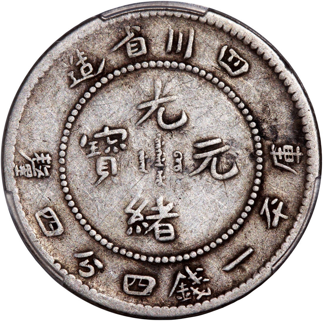 清代四川光緒一錢四分四釐,五火焰,正面複打,PCGS VF20