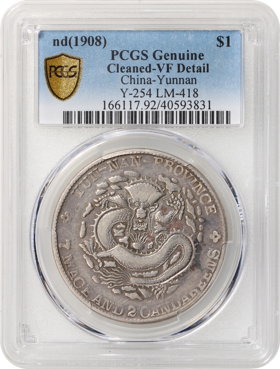 清代雲南光緒七錢二分,老龍,PCGS VF,有清洗,編號40593831