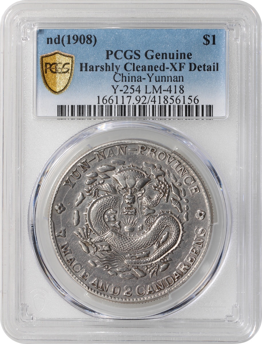 Yunnan Province, silver $1, Guangxu Yuan Bao, (LM-418), PCGS XF Detail, harshly cleaned. #41856156