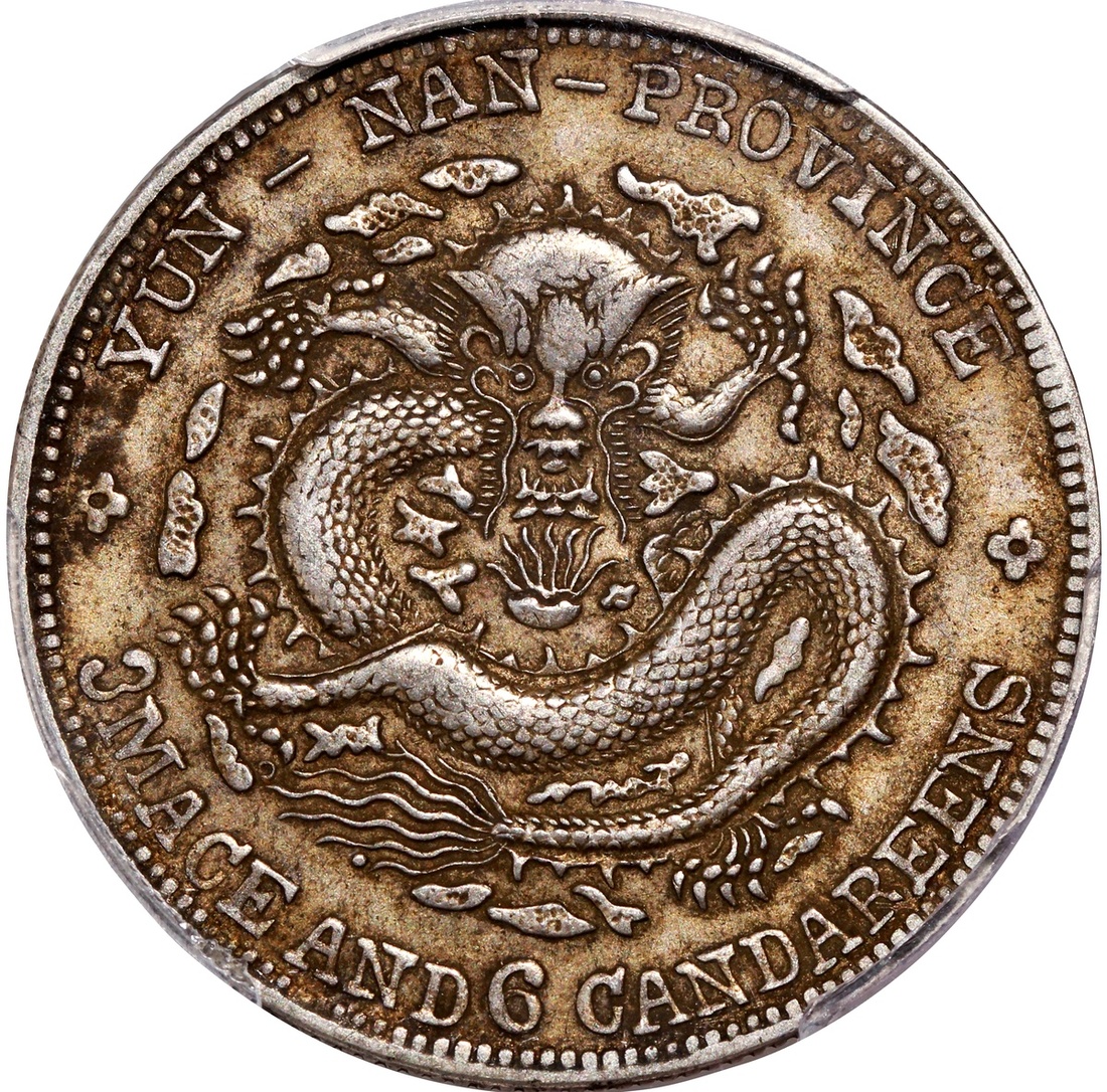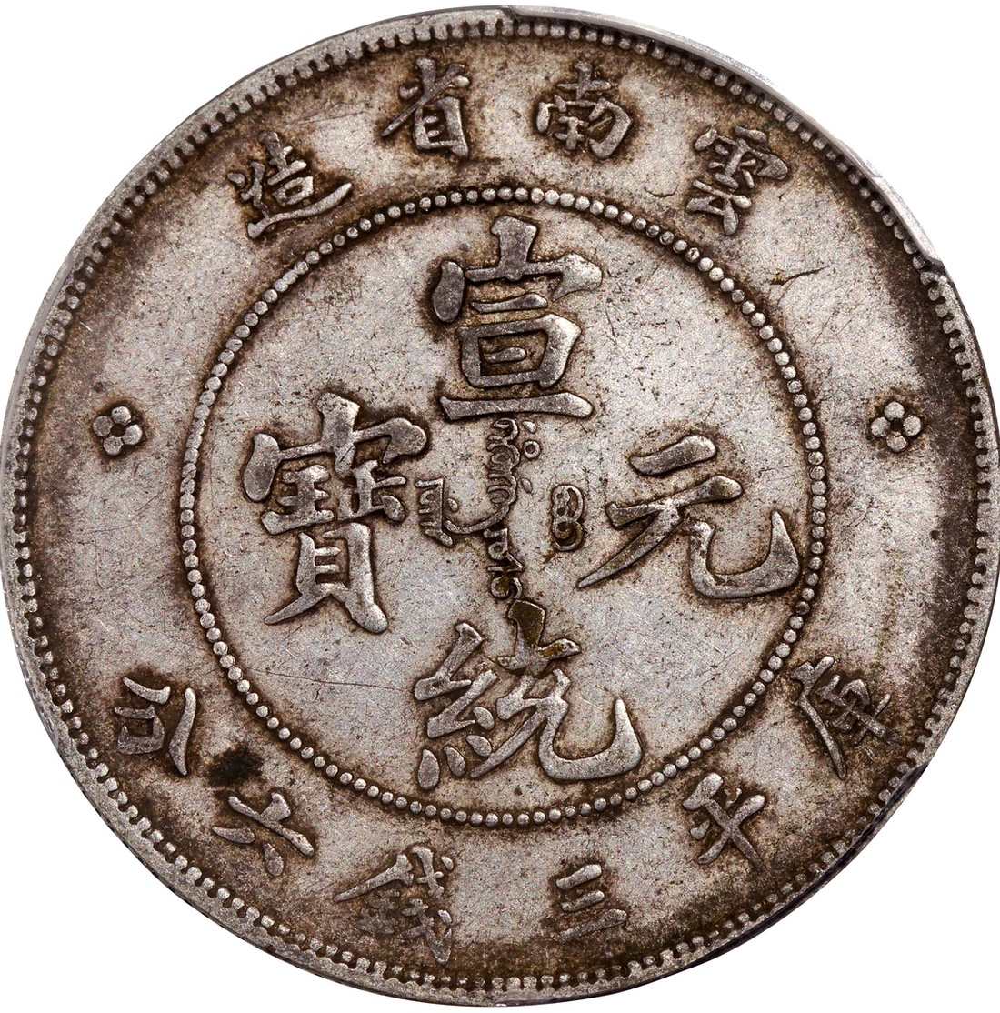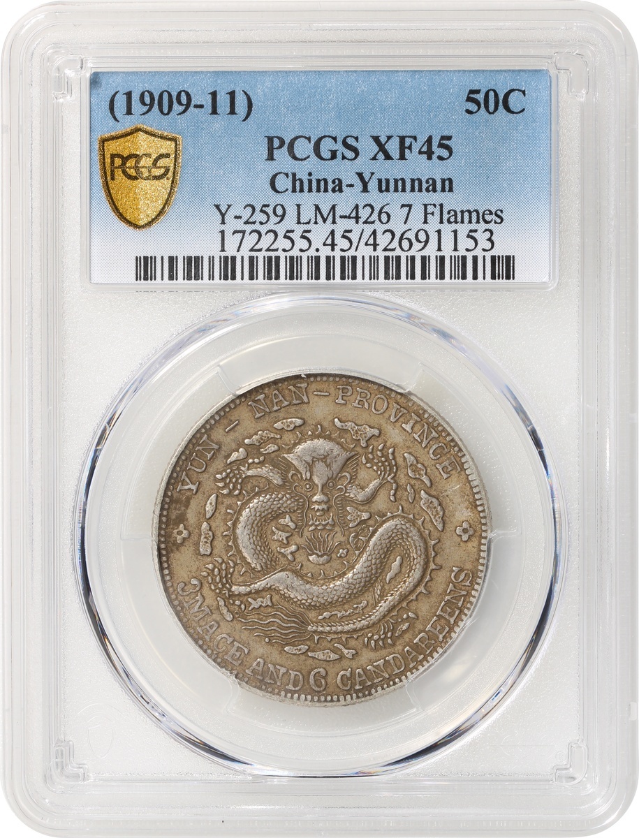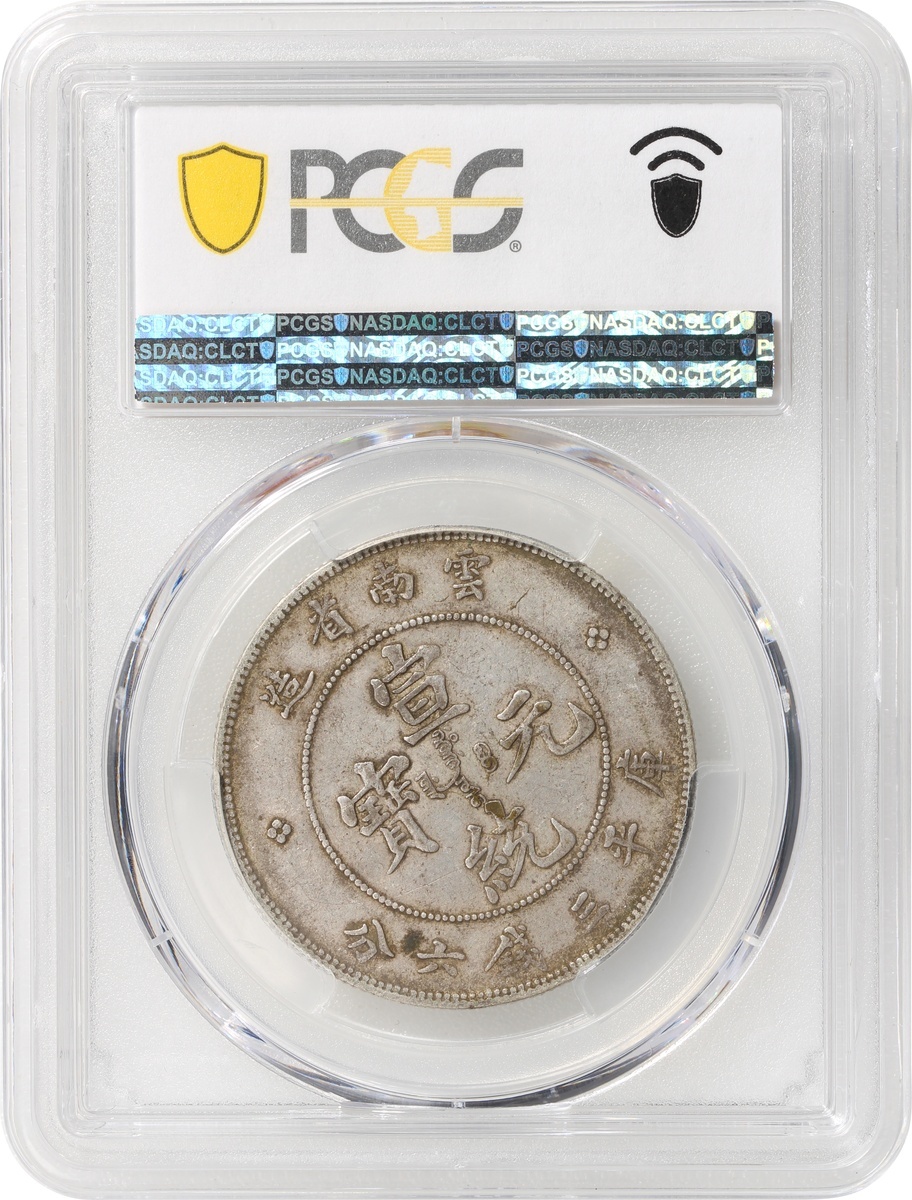 清代雲南宣統三錢六分,七火焰,深色包漿,PCGS XF45,編號42691153