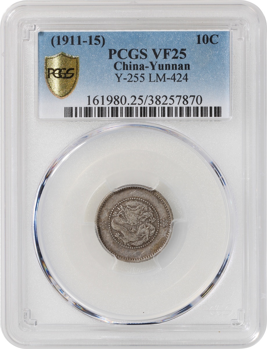 Yunnan Province, silver 10 cents, Guangxu Yuan Bao, new dragon, (LM-424), PCGS VF 25. #38257870