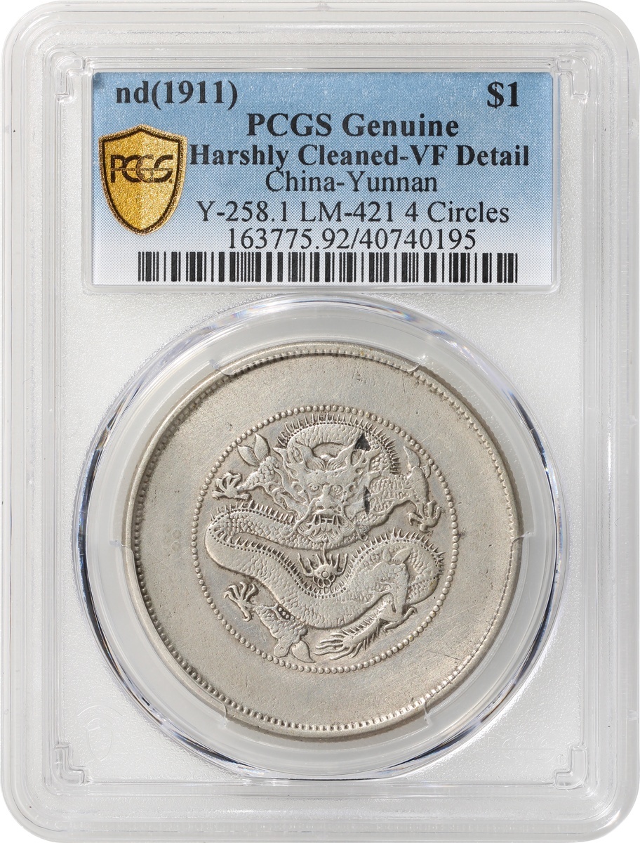 清代雲南七錢二分,新龍,四圈版,嚴重清洗,PCGS VF,編號40740195