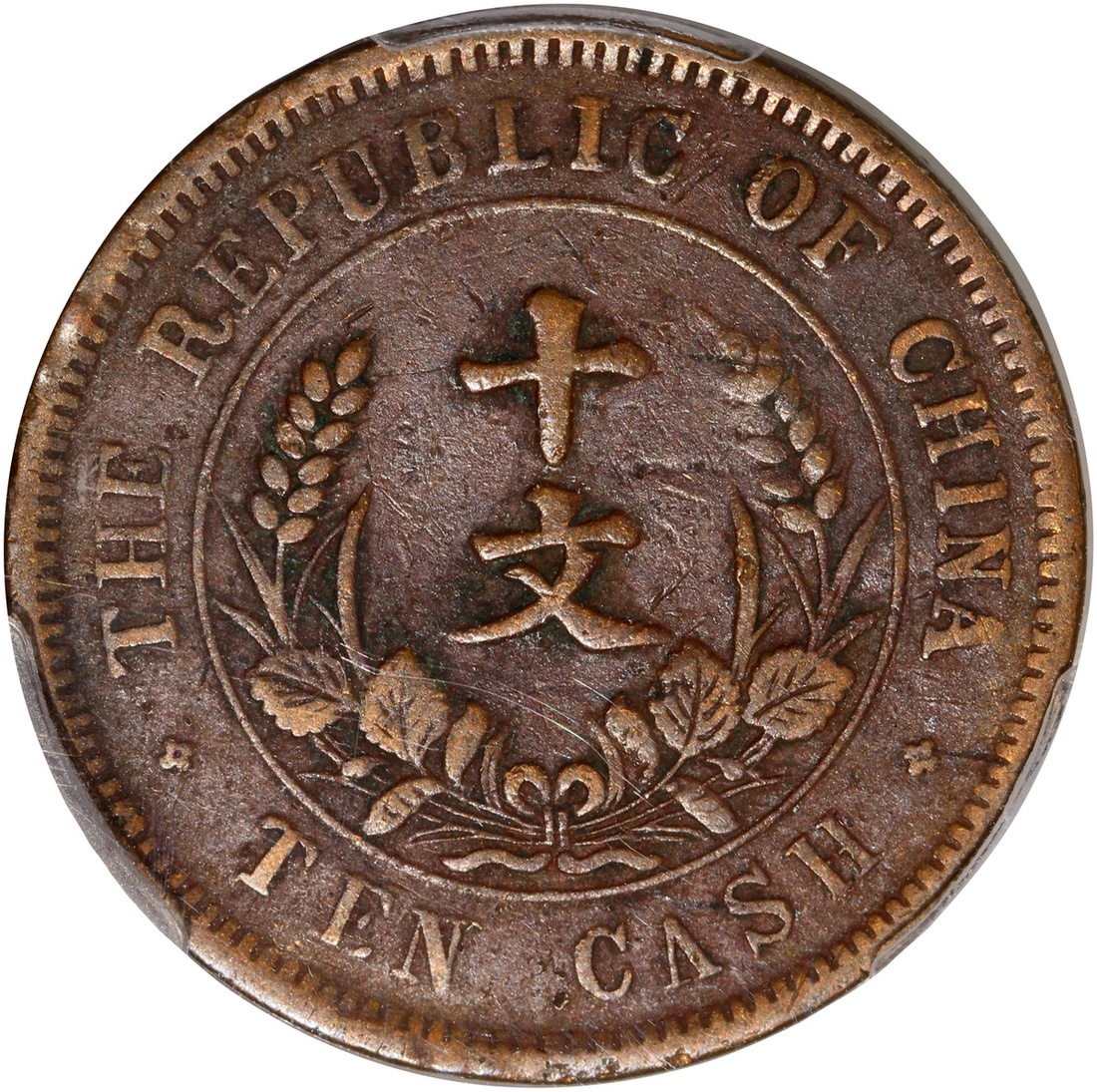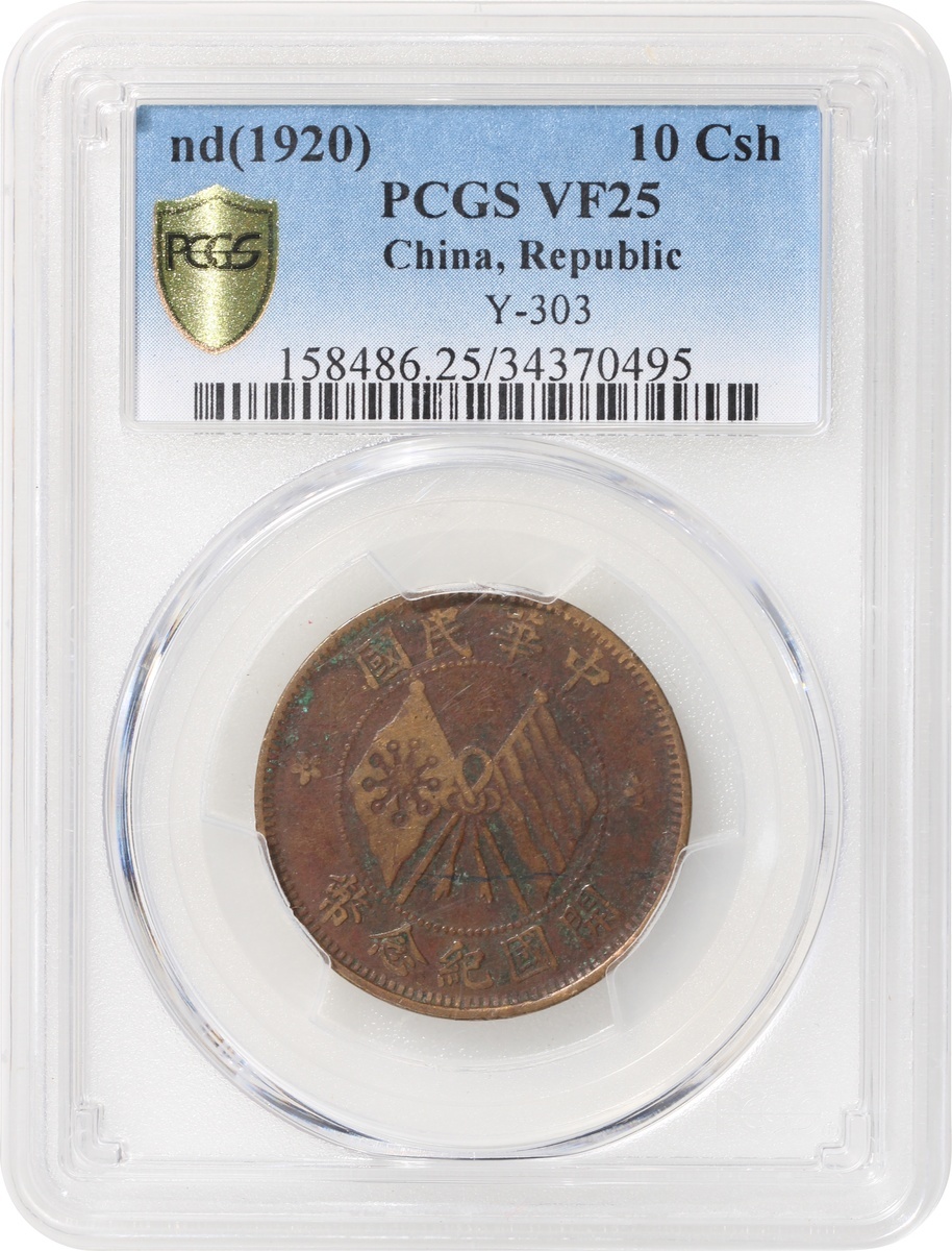 中國民國開國紀念幣十文,正面交叉旗幟,PCGS VF25,編號34370495