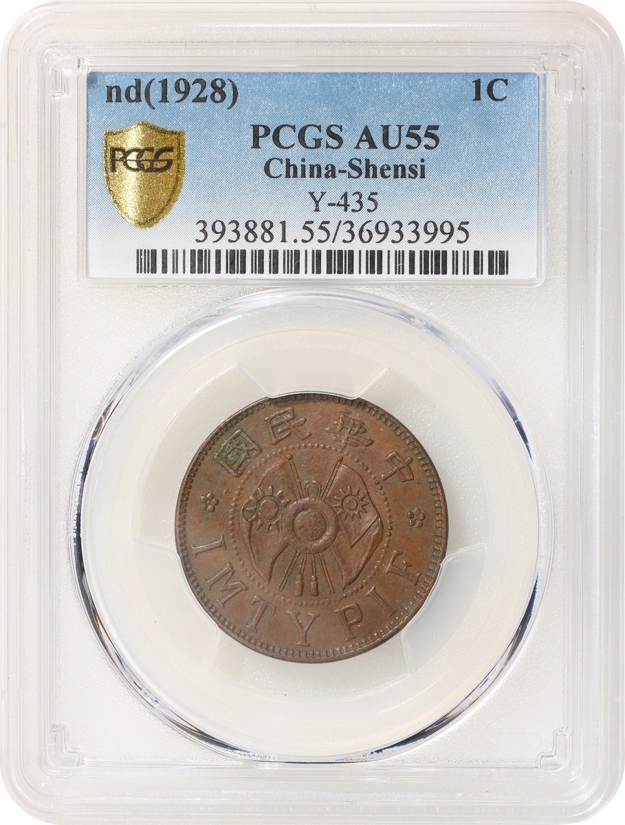 陝西嘉禾雙旗一分,PCGS AU55,編號36933995