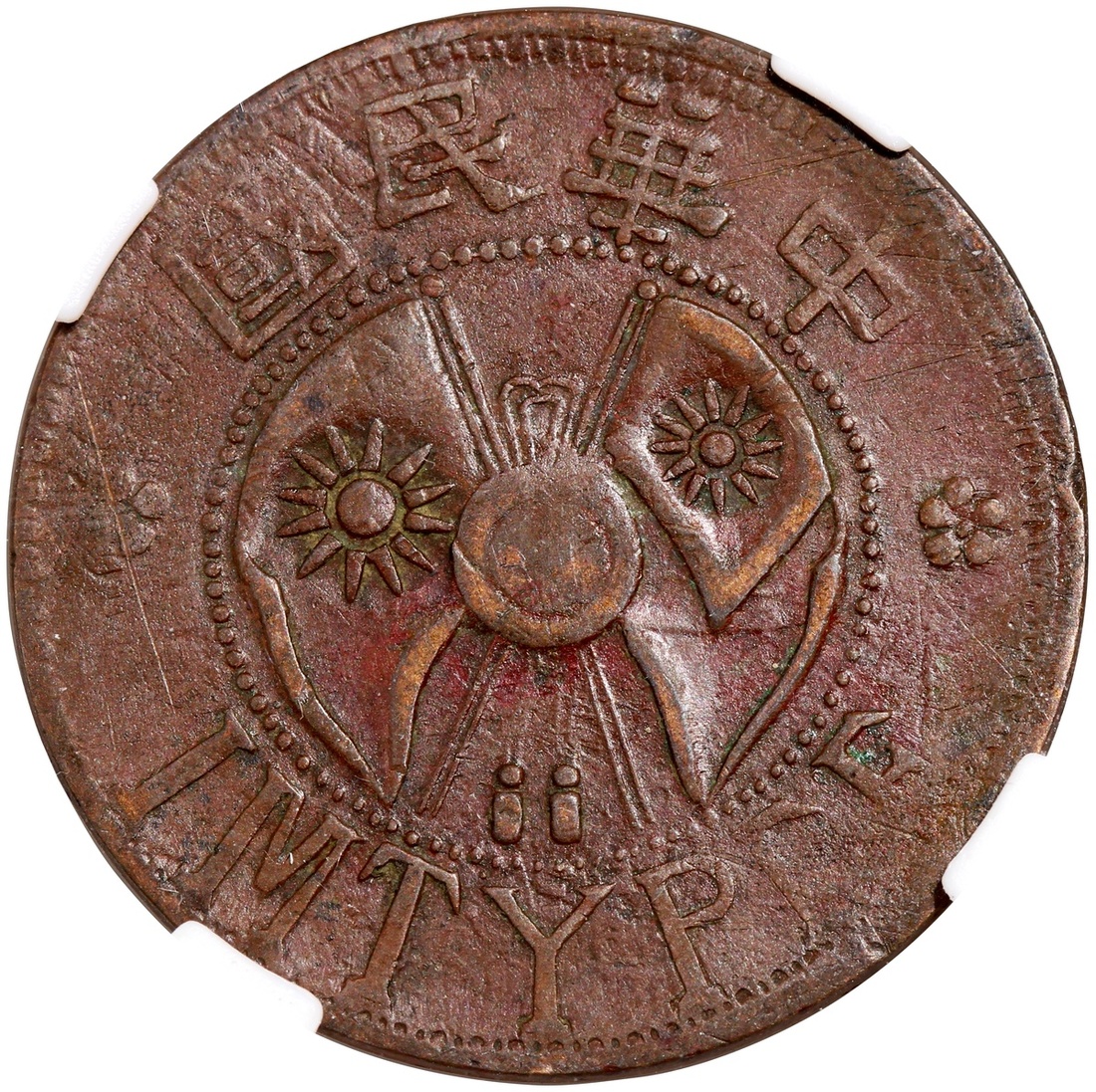 China, group of 3x copper fractionals, consisting of Kwangtung Province, 10 cash, 1900-1906, 'Guangxu Yuan Bao', and Shensi Province, a pair of 2 fen, 1928, crossed flags, graded Zhong Qian AU58, XF and AU55 respectively (3)