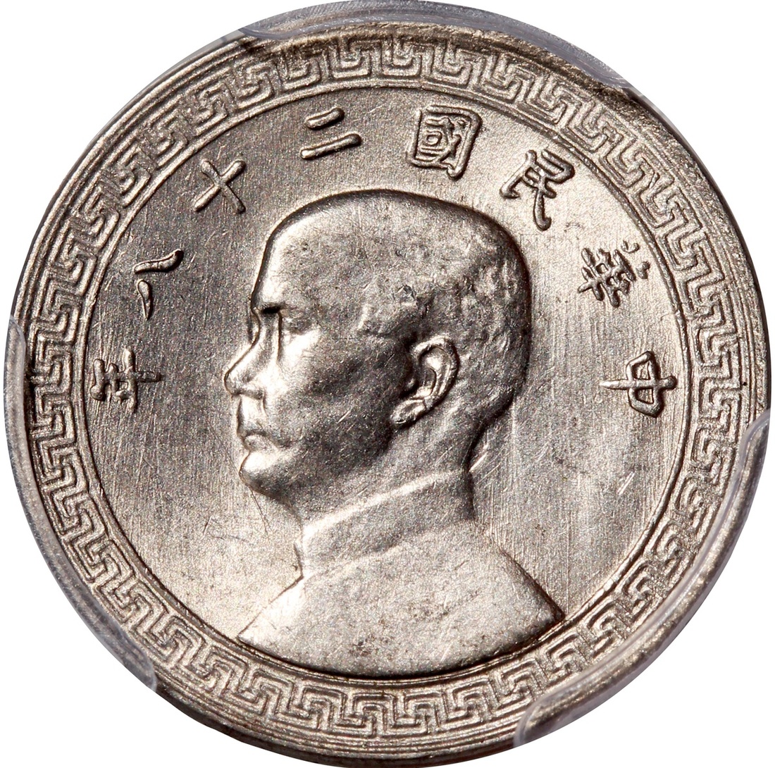 民國28年孫像布圖伍分,PCGS AU58,#41926791