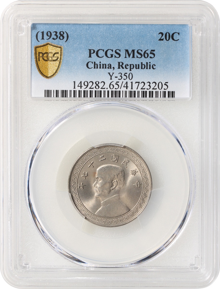 Republic of China, copper nickel 20 cents, 1938, (Y-350), PCGS MS65, #41723205.