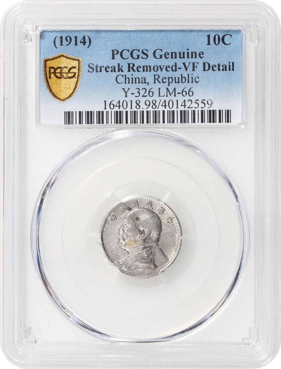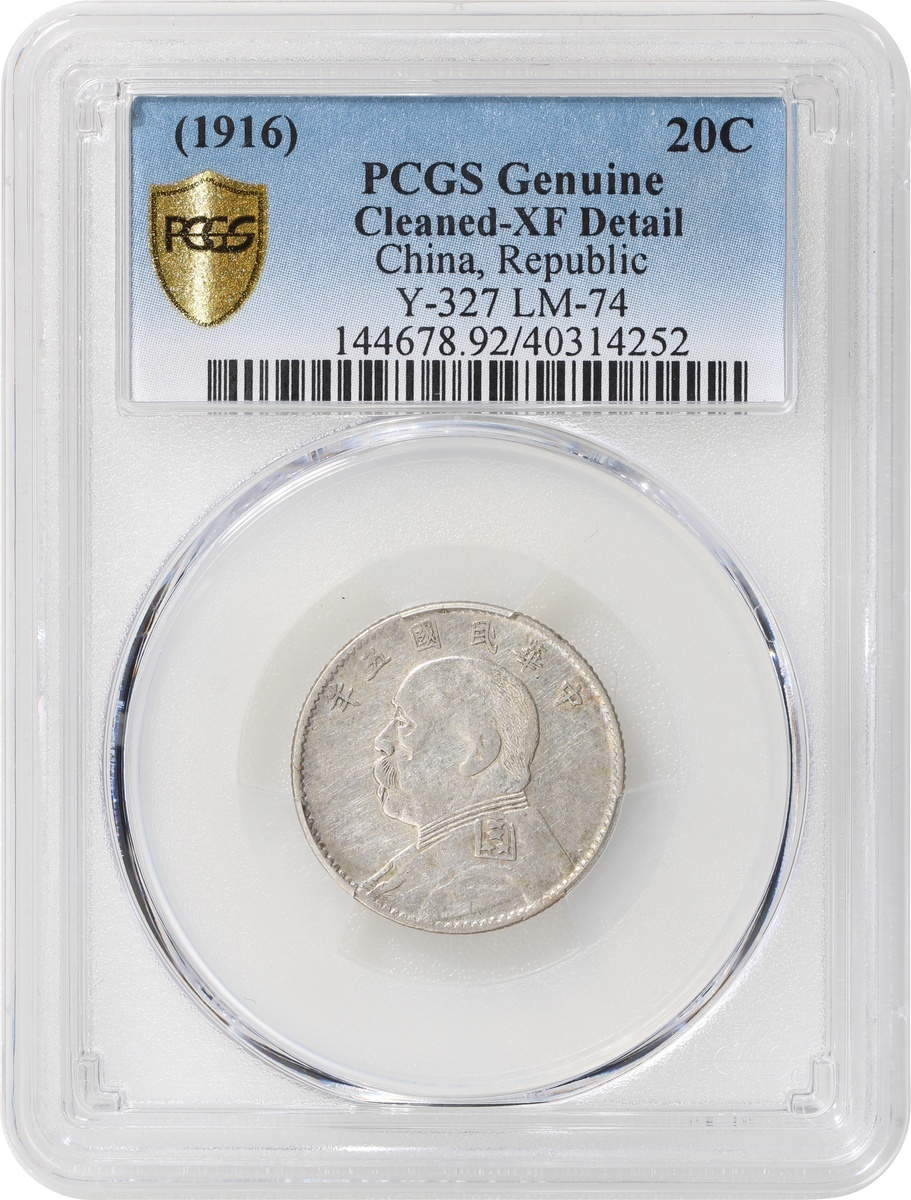 Republic of China, a pair of silver 10 and 20 cents, Yuan Shih Kai, 1914 and 1916, (Y-326, LM-66 and Y-327, LM-74), graded PCGS VF Detail (Streak Removed) and XF Detail (cleaned), #40142559 and #40314252. (2)