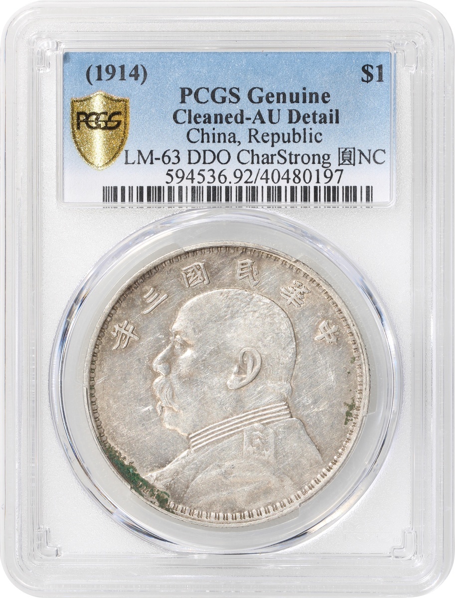 民國三年袁世凱像壹圓,正面複打,PCGS AU Detail,有清洗
