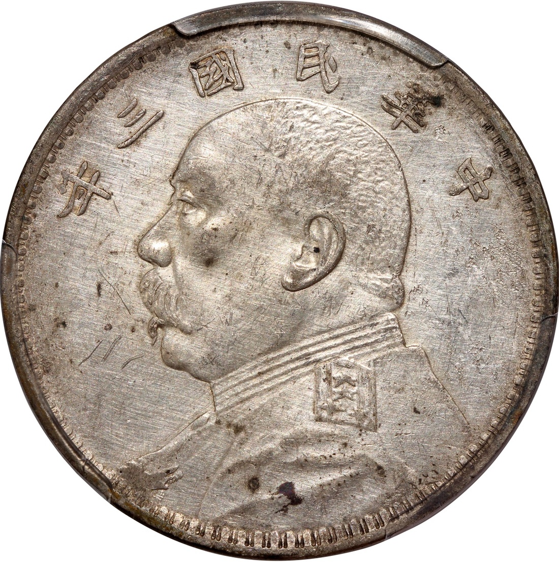 China, Republic, silver $1, Year 3(1914), Yuan Shih Kai dollar, (LM-63), PCGS AU Detail, cleaned.