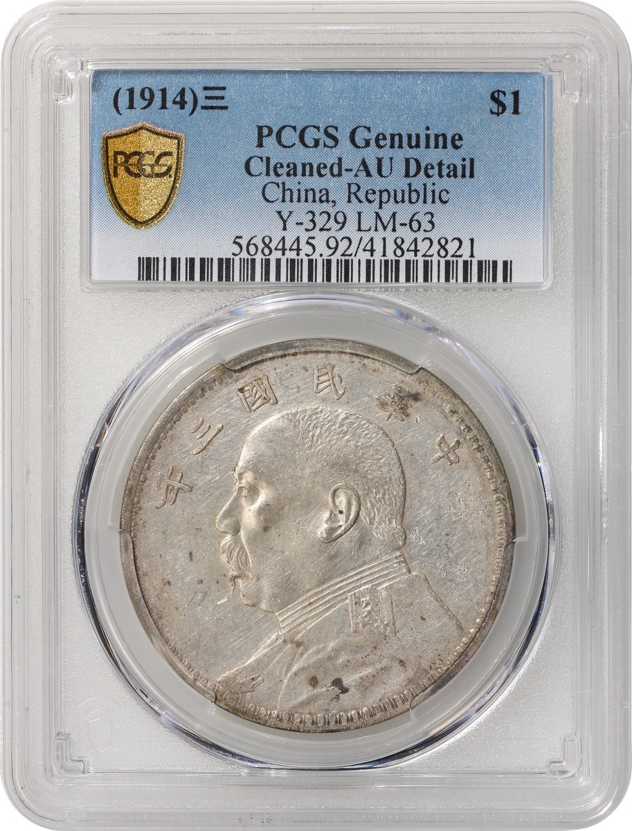 民國三年袁世凱像壹圓,PCGS AU Detail,有清洗
