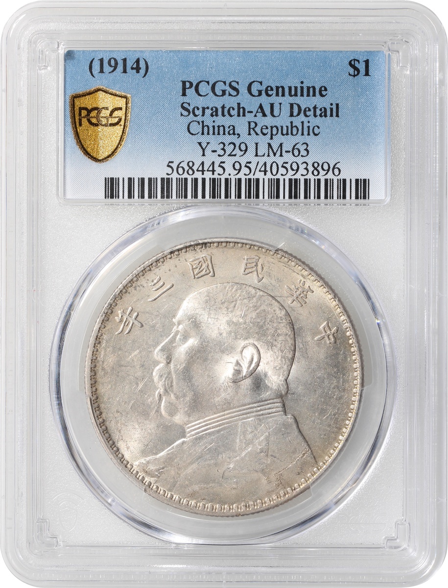 China, Republic, silver $1, Year 3(1914), Yuan Shih Kai dollar, (LM-63), PCGS AU Detail, scratch. #40593896