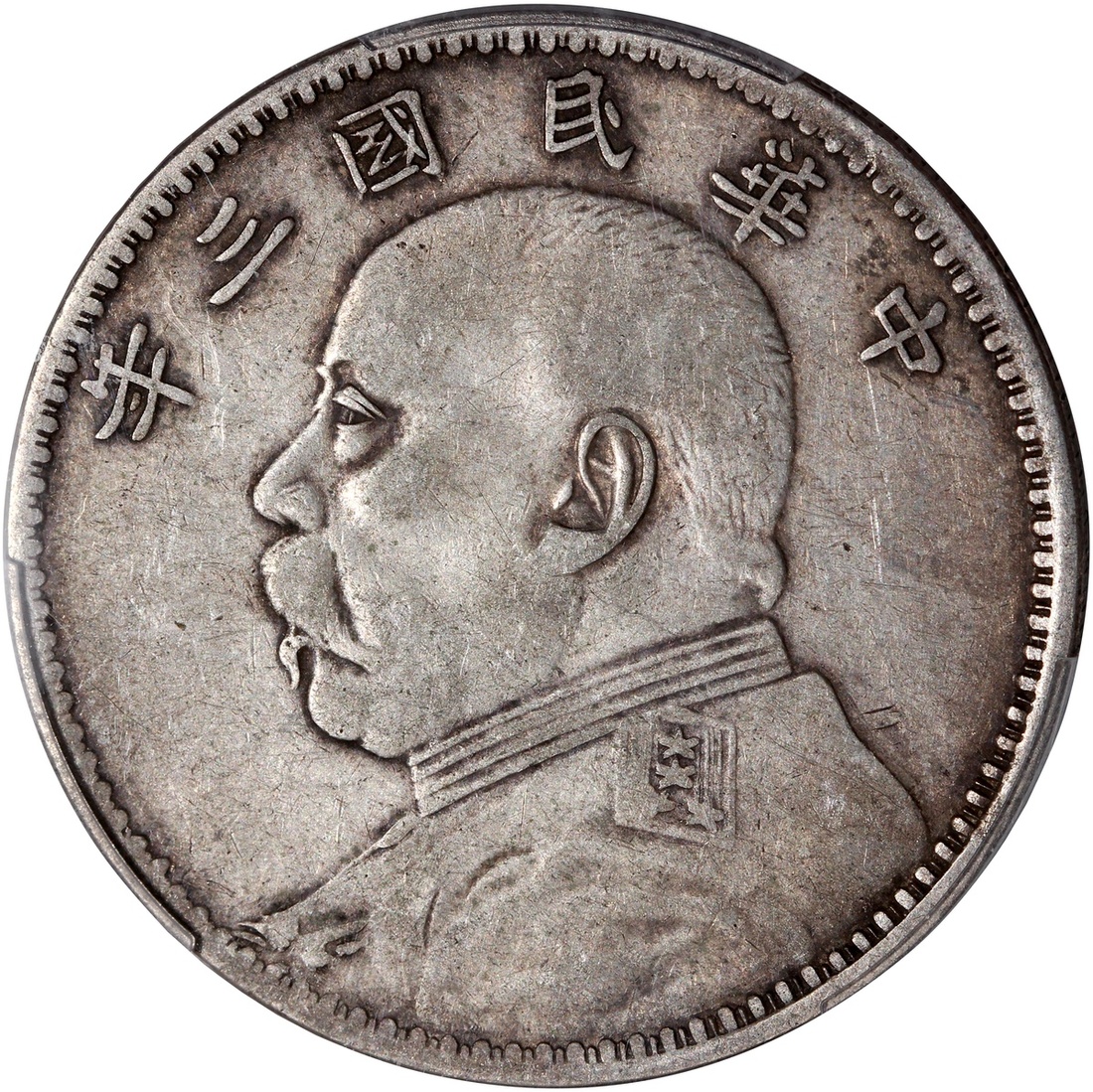 銀幣一組2枚,分別為民國三年袁世凱像壹圓甘肅版,PCGS VF35,及民國九年袁世凱像壹圓粗發版,PCGS AU50,#39273290及39389359