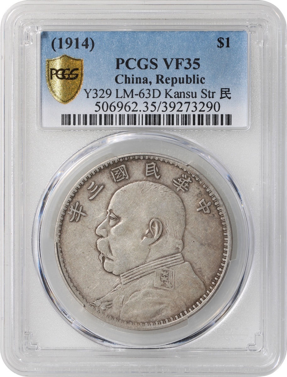 Republican China, a pair of silver $1, Year 3 (1914), Kansu variety, and Year 9 (1920), 'Yuan Shih Kai', (Y-329, LM-63D and Y-329, LM-77), graded PCGS VF35 and AU50 respectively, #39273290 and 39389359 (2).