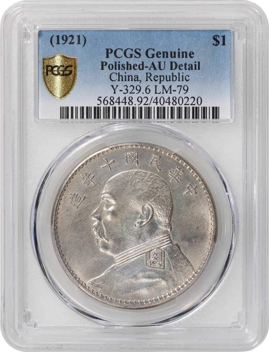 Republic of China, silver $1, 1921, Yuan Shih Kai, (Y-329.6, LM-79), PCGS Genuine Polished - AU Detail