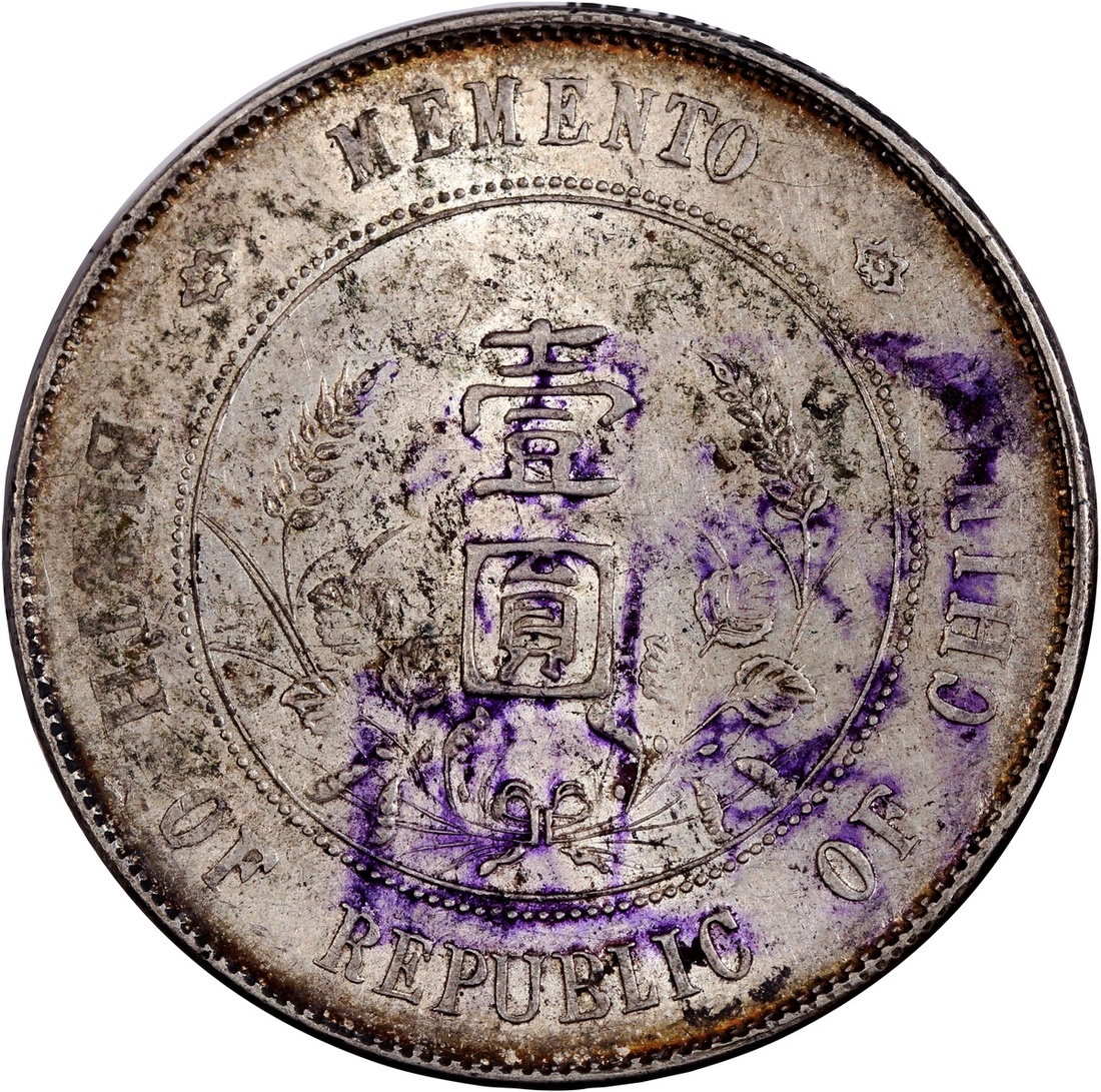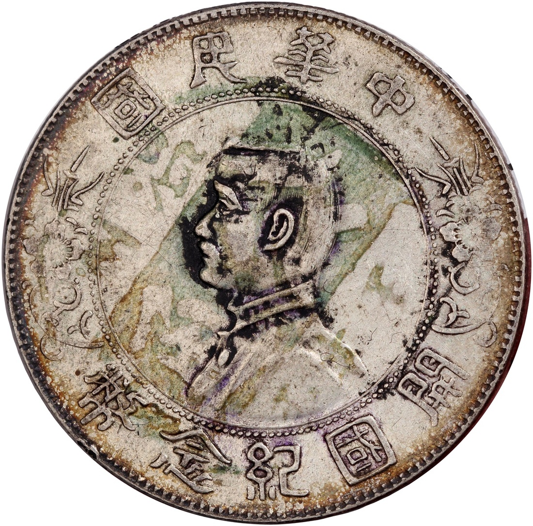 孫中山像開國紀念幣壹圓,墨印,AU