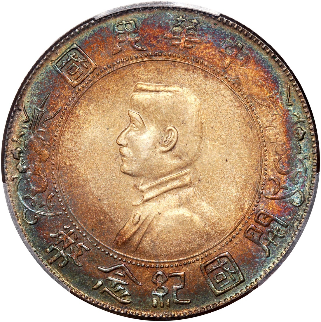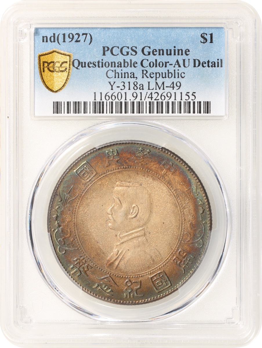 孫中山像開國紀念幣壹圓,PCGS AU,黑色包漿,顏色有疑,#42691155