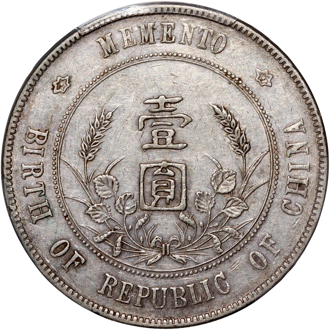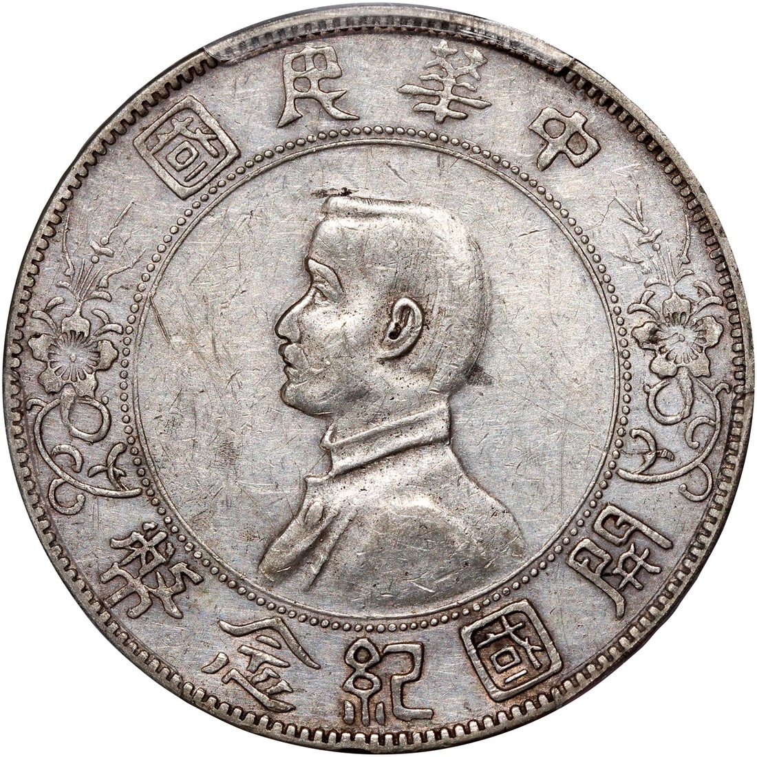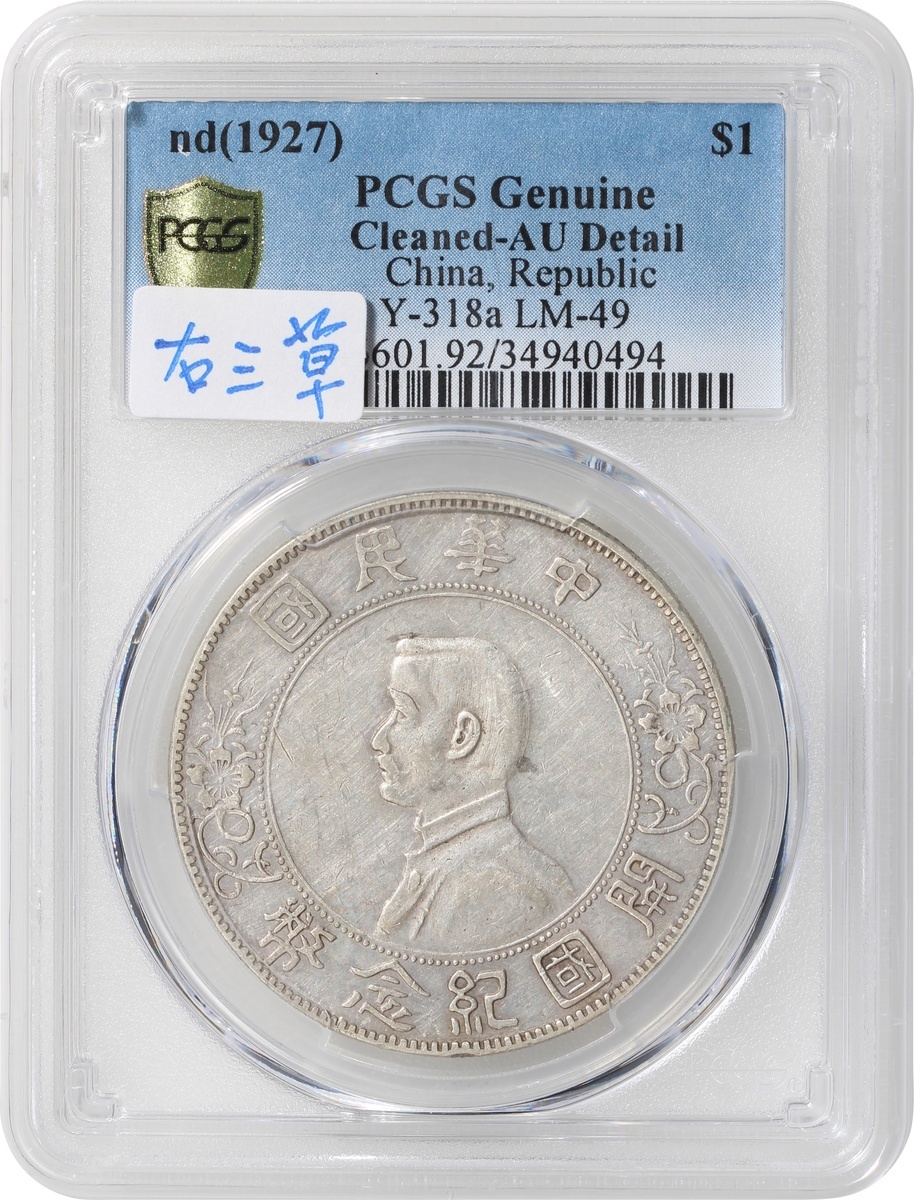 孫中山像開國紀念幣壹圓,右三花,PCGS AU,有清洗,#34940494