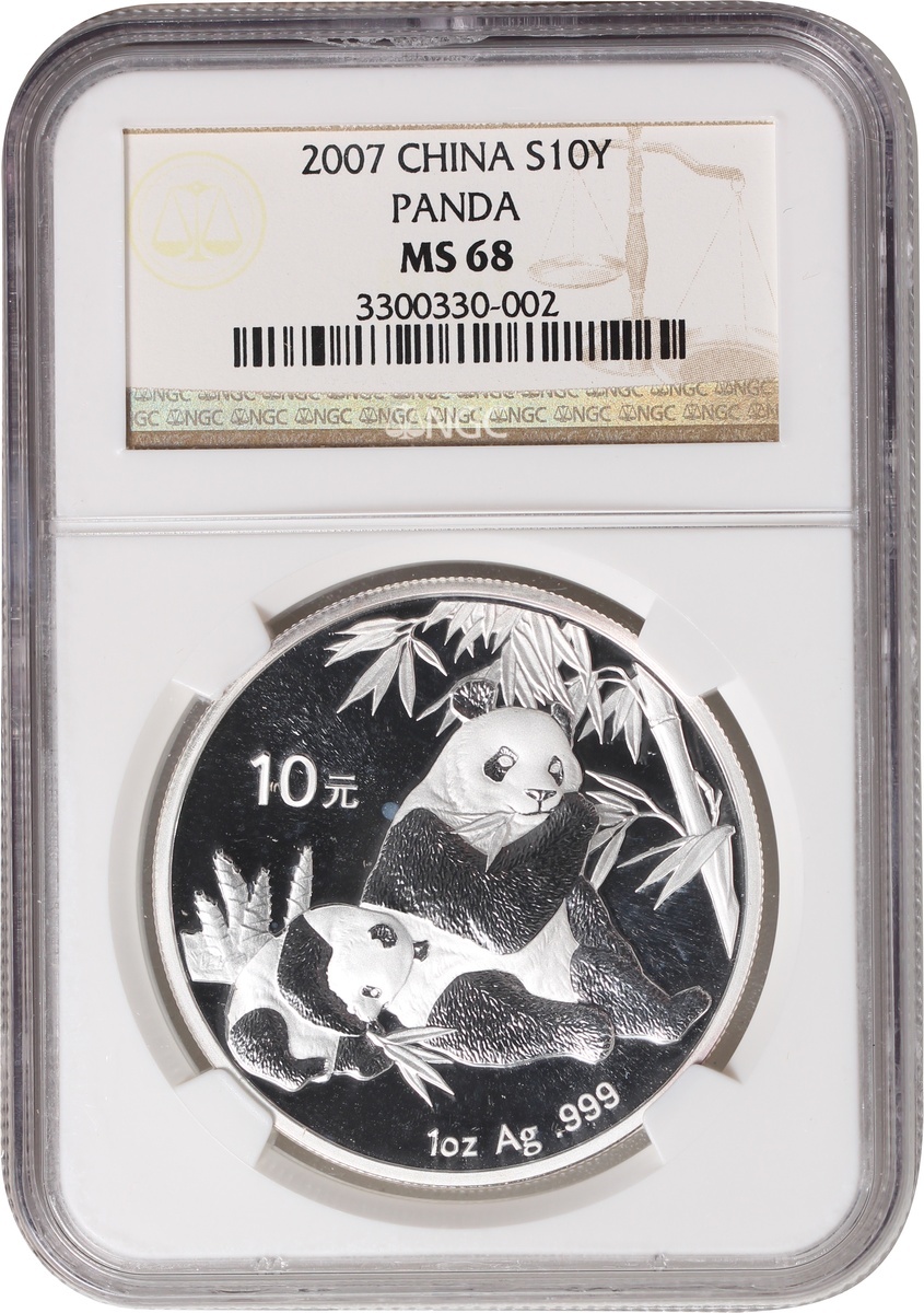 2007年中國熊貓銀幣10元,NGC MS68