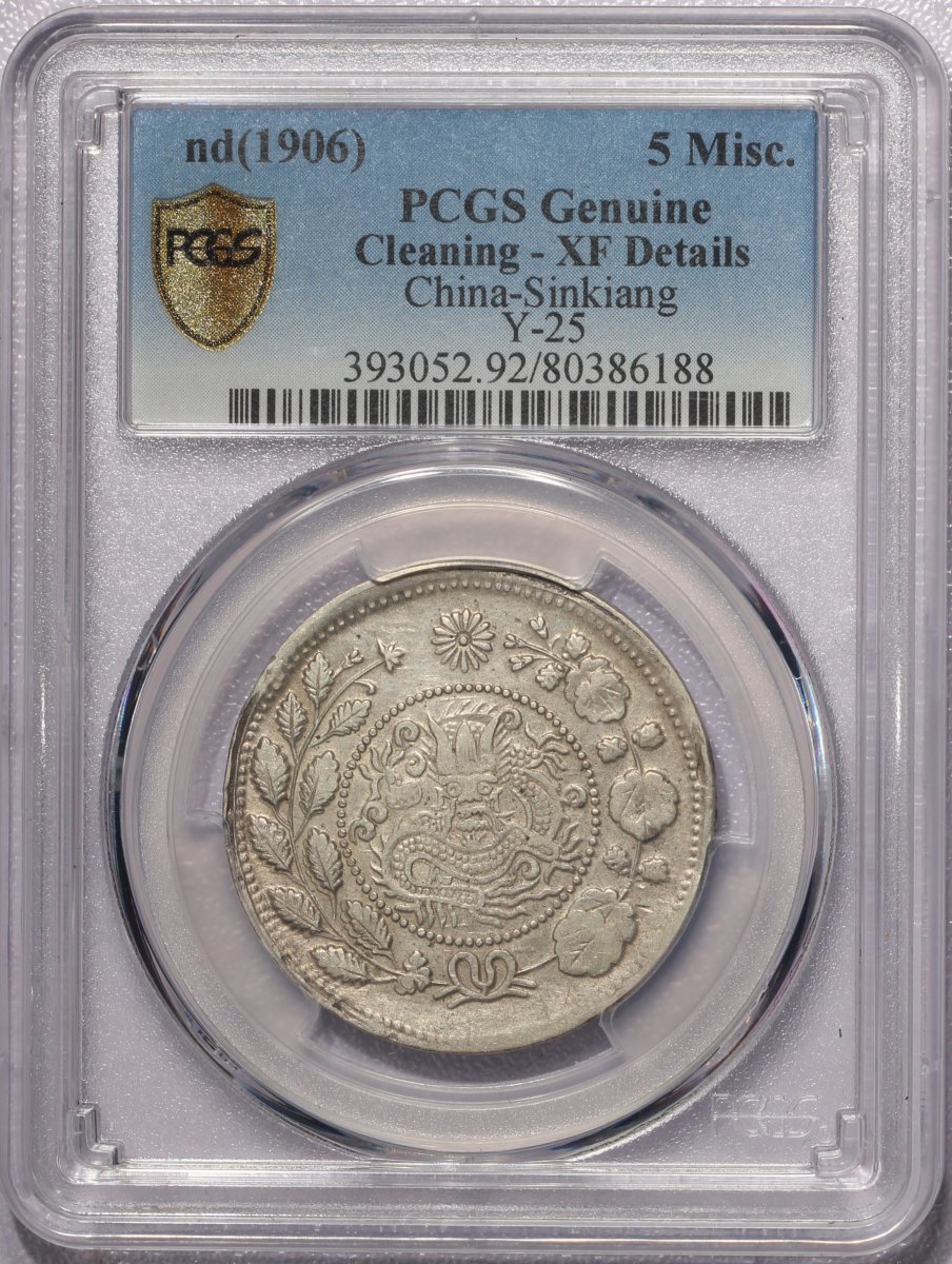 Sinkiang Province, silver 5 miscal, ND (1906), Kashgar, 'Da Qing Yin Bi', (Y-25), PCGS Genuine Cleaning - XF Details, #80386188.