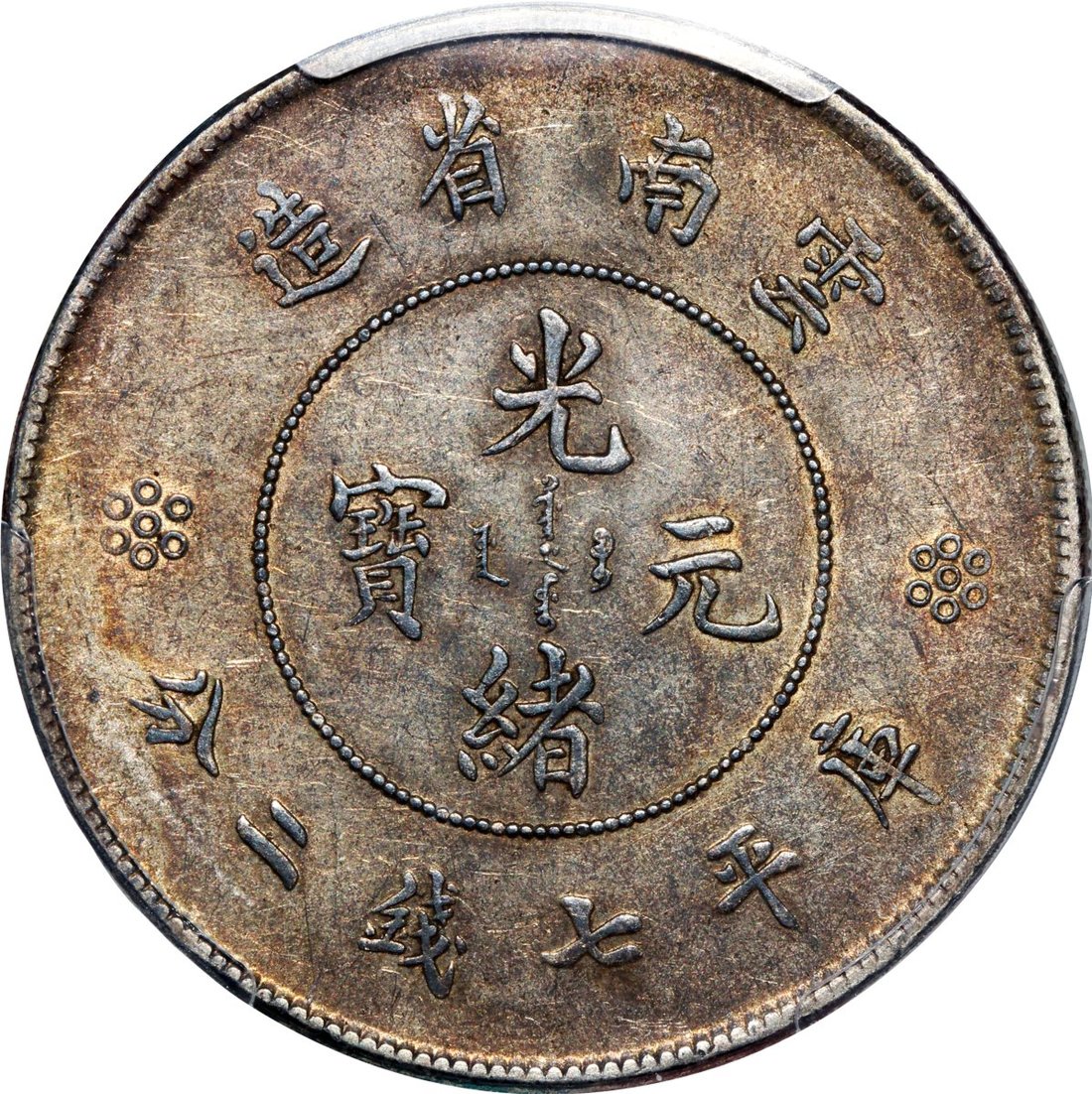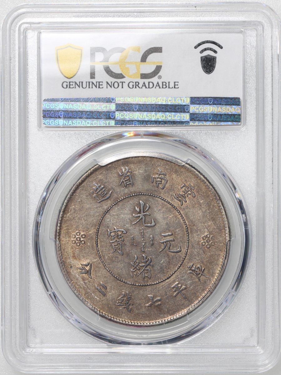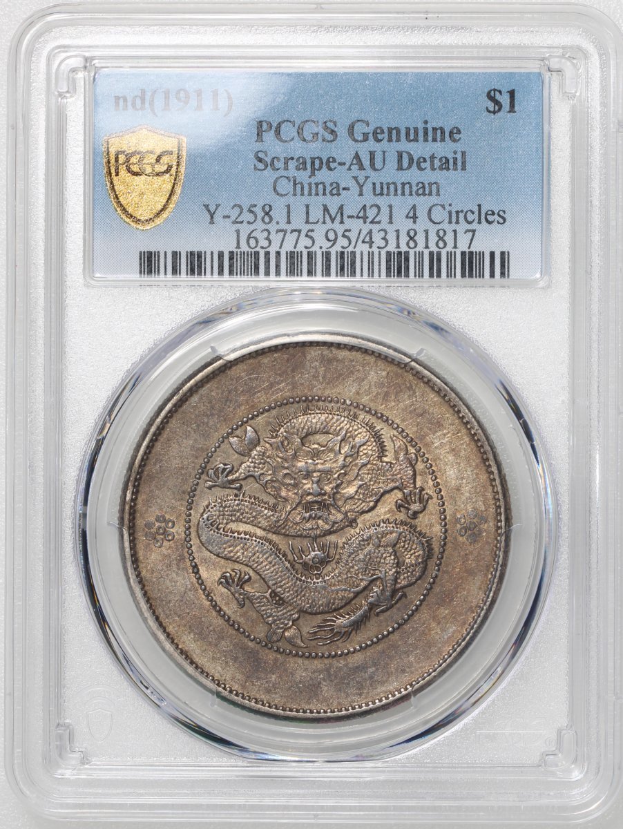 Yunnan Province, silver $1, ND(1911), Guangxu Yuan Bao, new dragon, 4 circles, (LM-421), PCGS AU Detail, scrape. #43181817