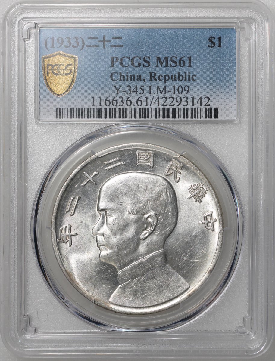 Republic of China, silver Junk dollar, 1933, (Y-345, LM-109), PCGS MS 61 #42293142 and a scarce year