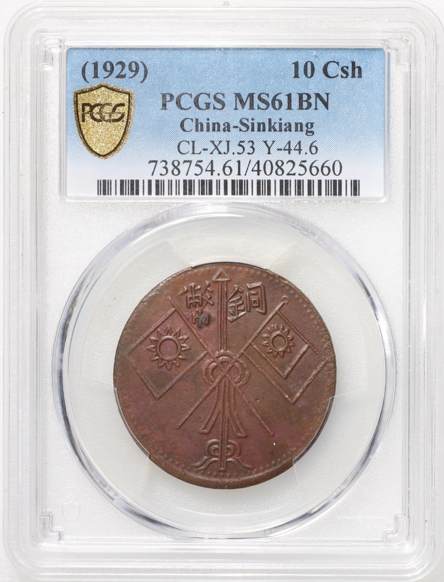 Sinkiang Province, 10 cash, copper, ND (1929), (Y-44.6), PCGS MS61BN, #40825660. A superb coin with only a small number in higher grades!