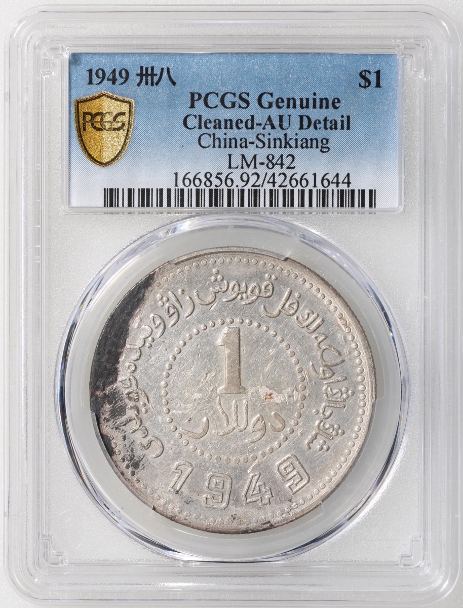 Sinkiang Province, silver $1, 1949, (LM-842), PCGS Genuine Cleaned - AU Detail, #42661644.