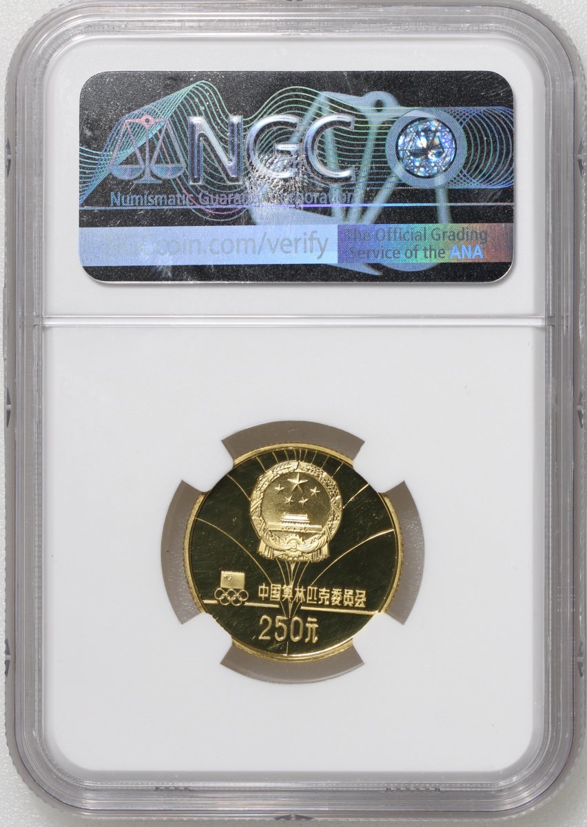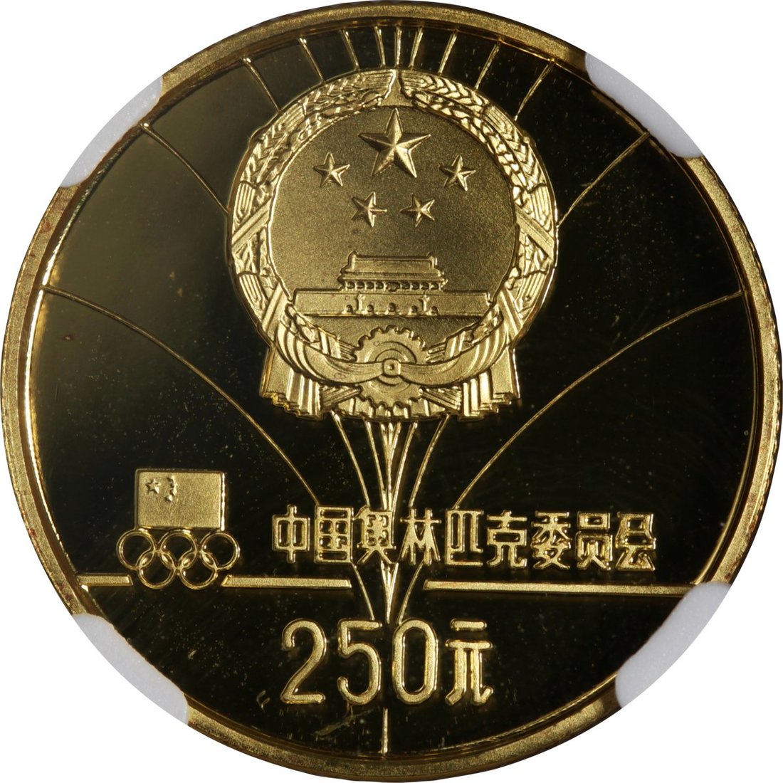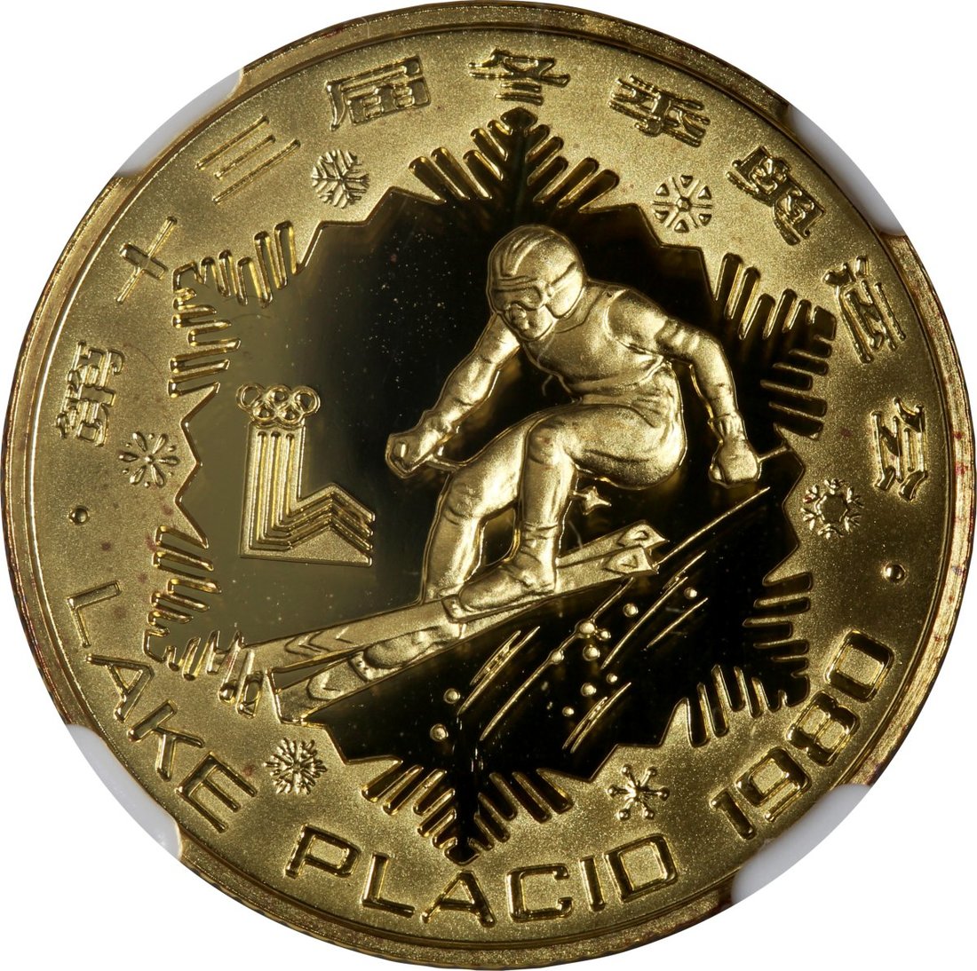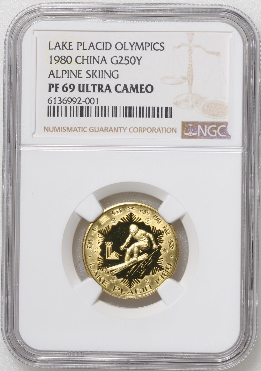 People's Republic of China, gold 250 yuan, 1980, Lake Placid Olympics: Alpine Skiing,
