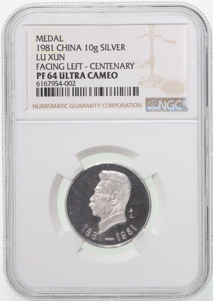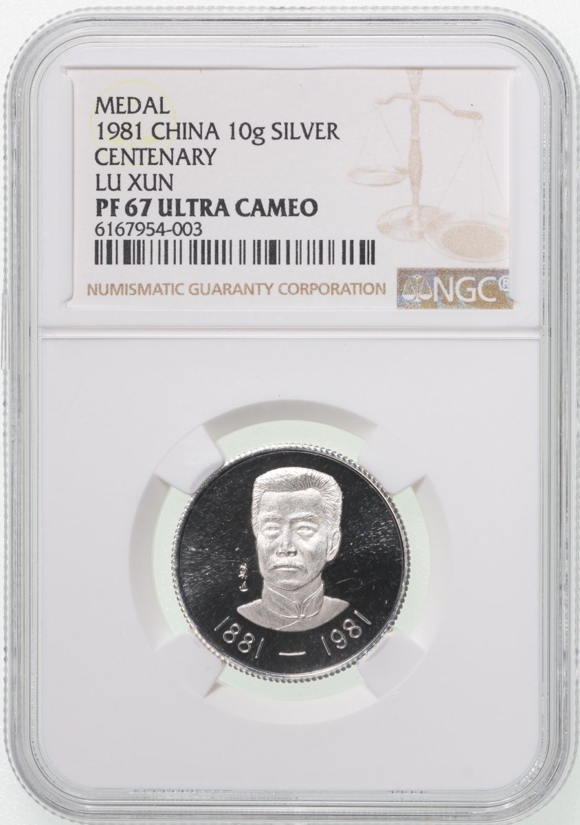 People's Republic of China, a pair of 10g silver medal, 1981, commemorating 100th Anniversary Lu Xun, graded NGC PF64 Ultra Cameo and 67 Ultra Cameo (2)