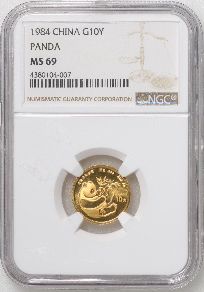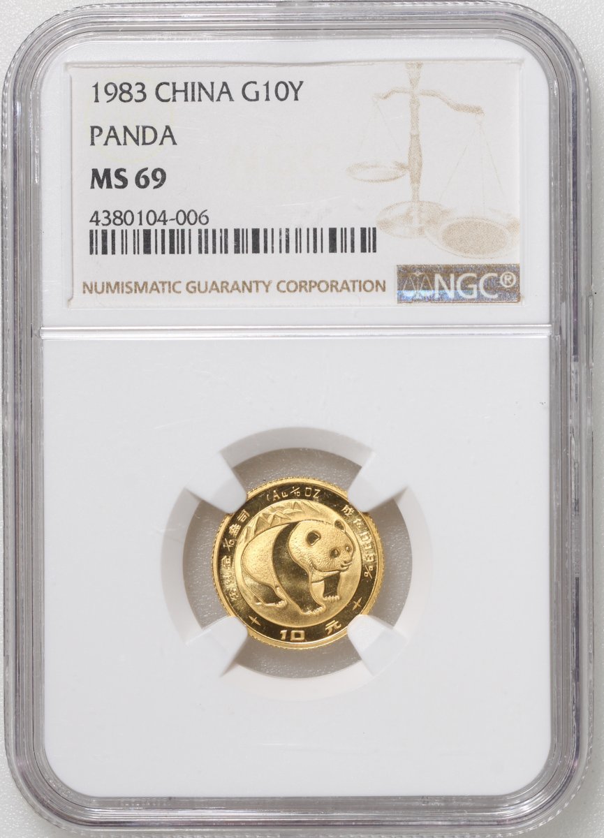 People's Republic of China, lot of 2x gold 10 yuan, 1983 and 1984 Panda series, both graded NGC MS69. Nice early dates (2)