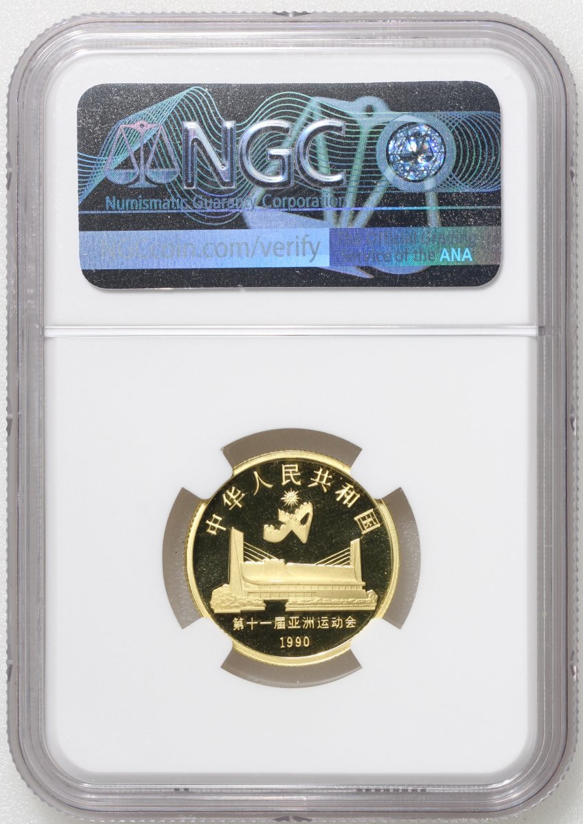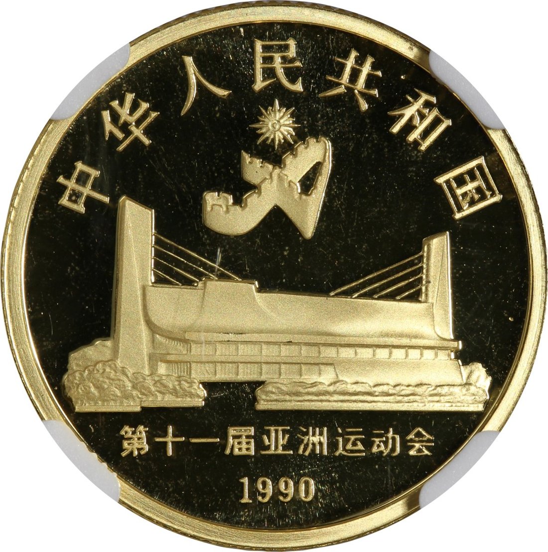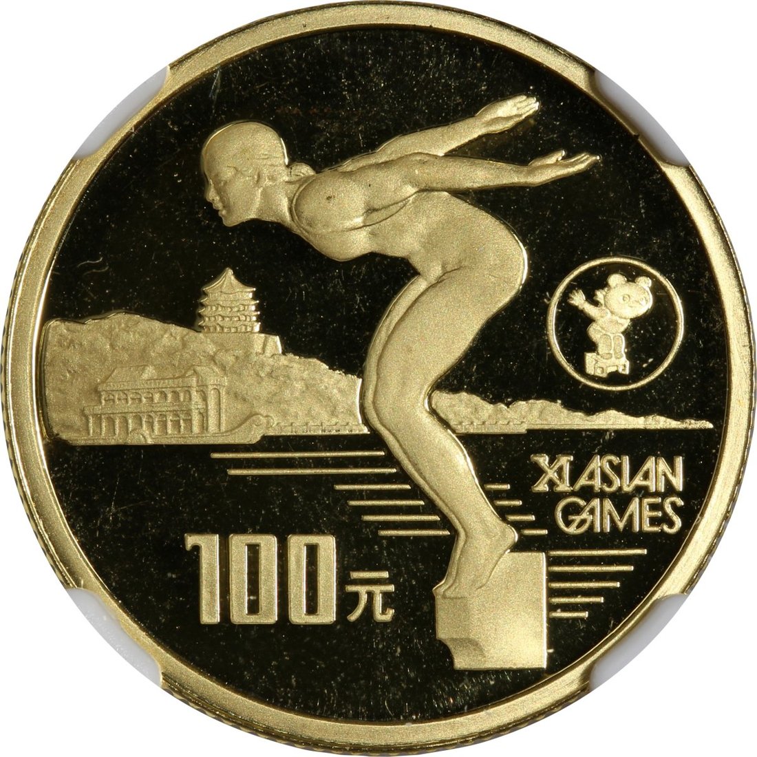 People's Republic of China, gold 100 yuan, 1990, 11th Asian Games, Beijing Series II: Swimmer,