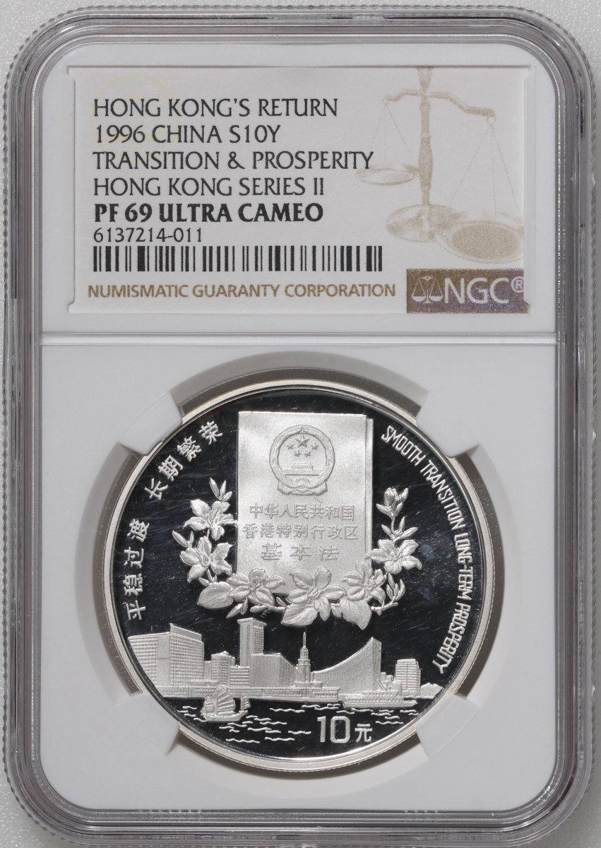 People's Republic of China, silver 10 yuan, 1996, Hong Kong Series II: Transition and Prosperity,