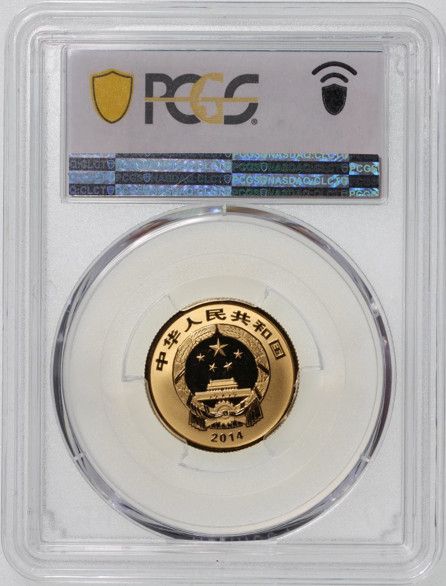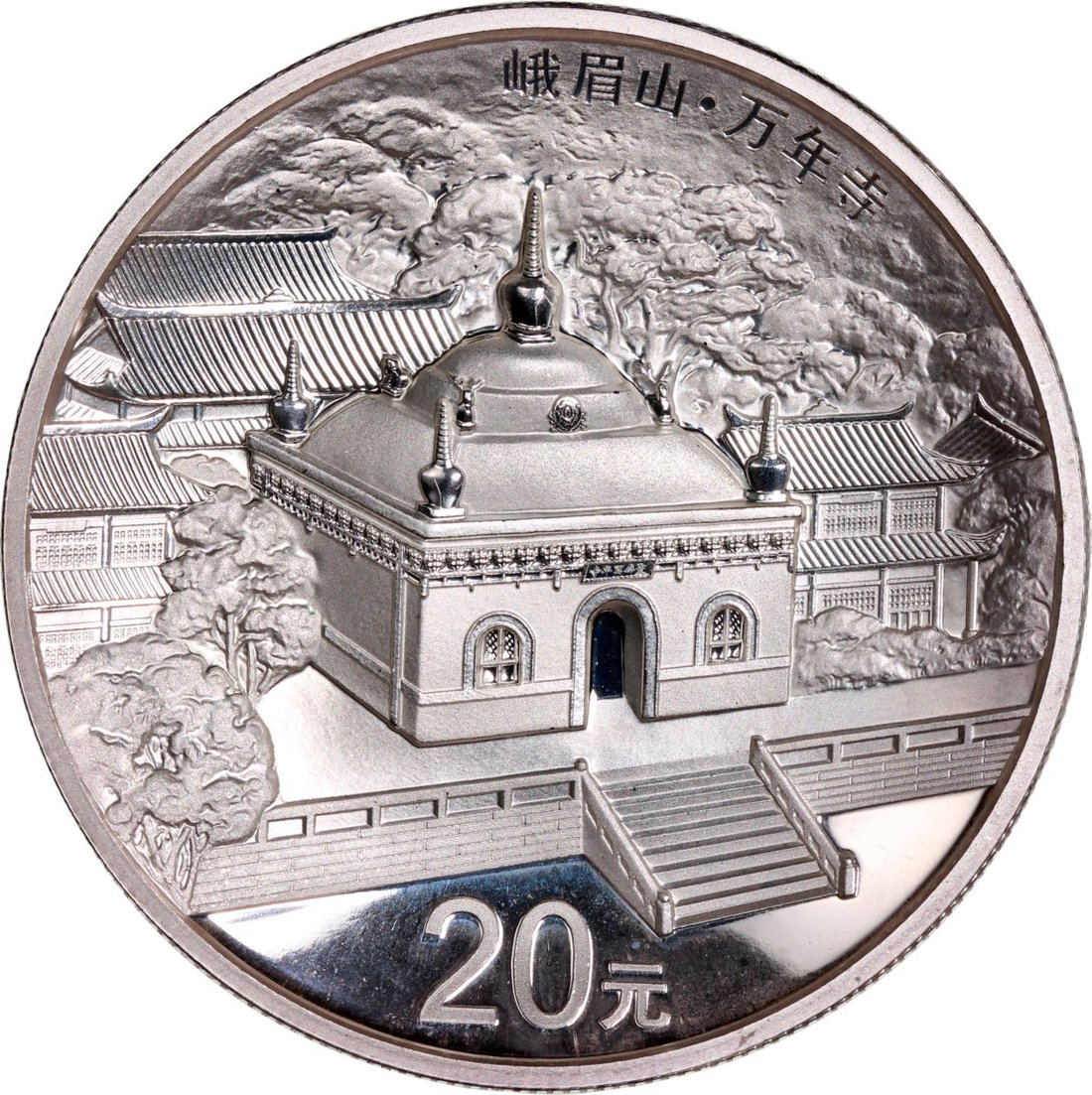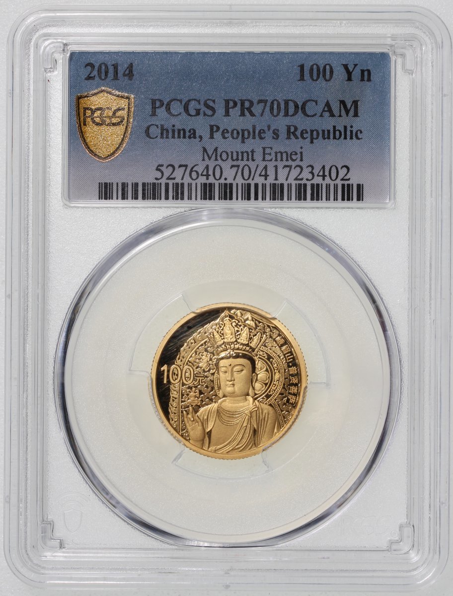 People's Republic of China, Chinese Sacred Buddhist Mountains, Mount Emei, 2014, gold proof 100 Yuan, 'Samantabhadra', weighs 1/4oz containing .999 gold, and silver proof 20 Yuan, 'Wannian Temple', weighs 2oz containing .999 silver,
