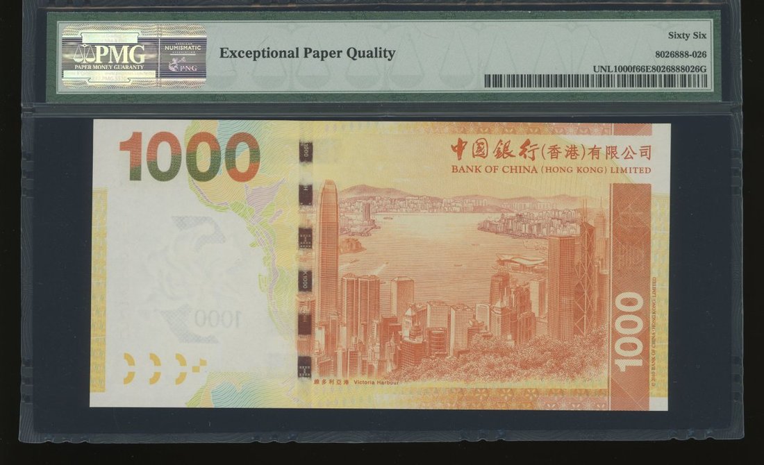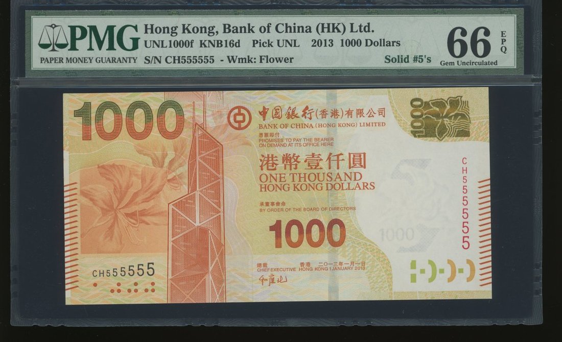 Bank of China, $1000, 1.1.2013, solid serial number CH555555, (Pick 345), PMG 66EPQ Gem Uncirculated