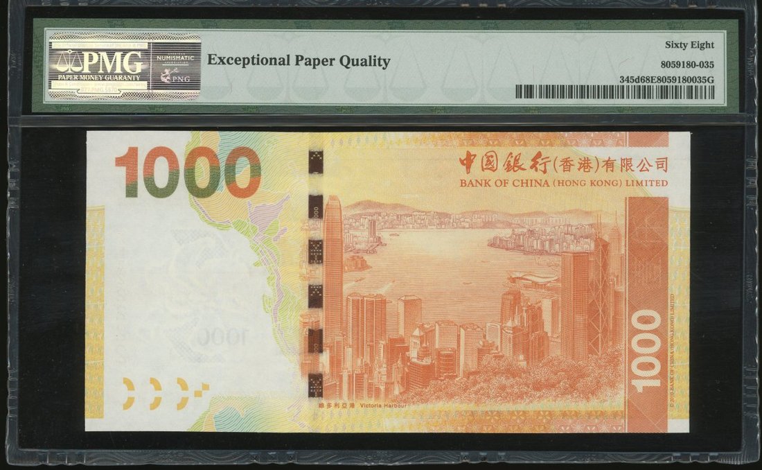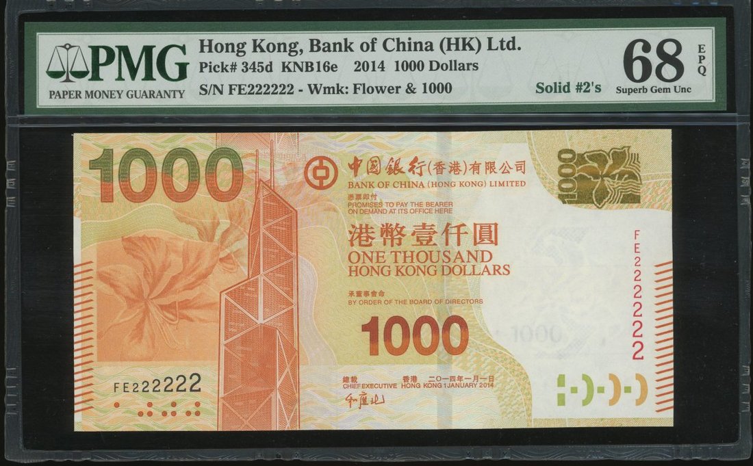 Bank of China, $1000, 1.1.2014, solid serial number FE222222, (Pick 345d), PMG 68EPQ Superb Gem Uncirculated