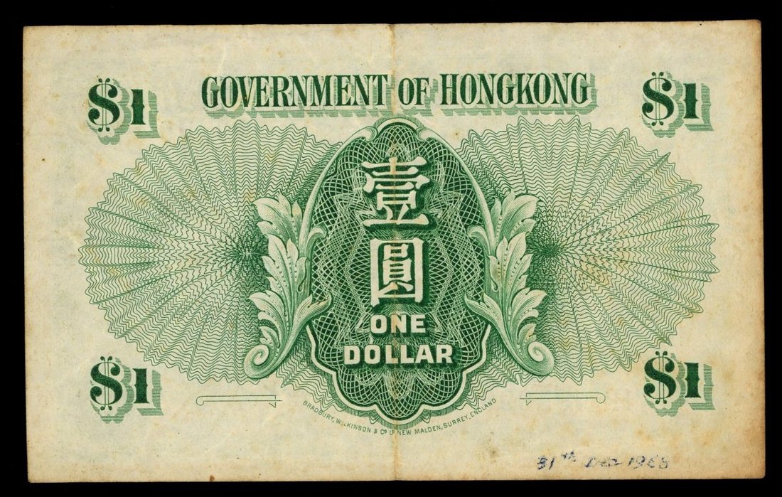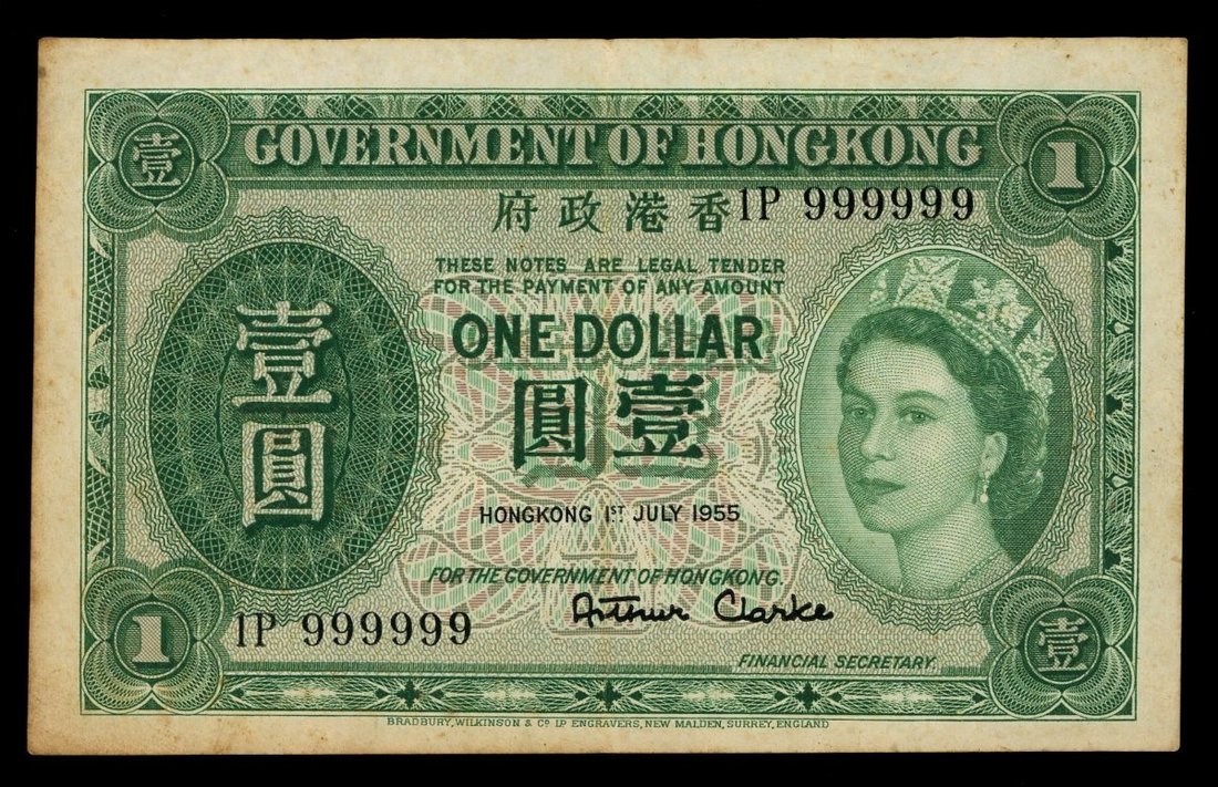 Hong Kong Government, $1, 1st July 1955, solid serial number 1P 999999, Elizabeth II at right,
