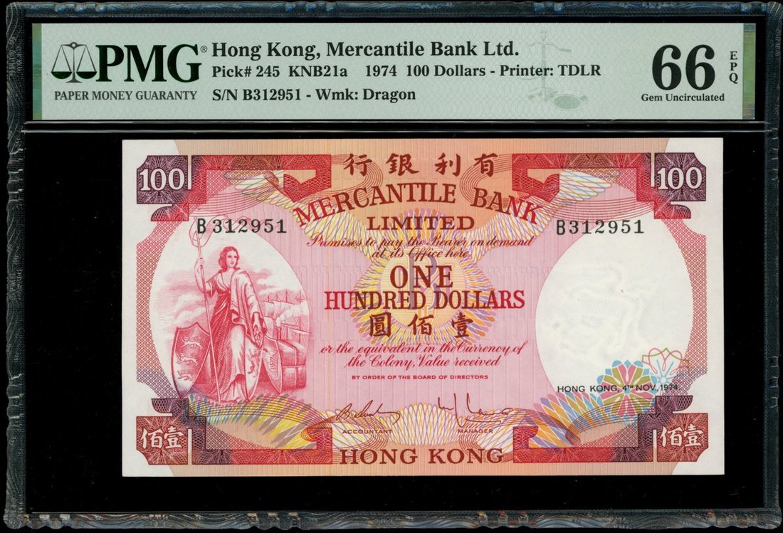 Mercantile Bank Limited, $100, 4.11.1974, serial number B312951, (Pick 245), PMG 66EPQ Gem Uncirculated