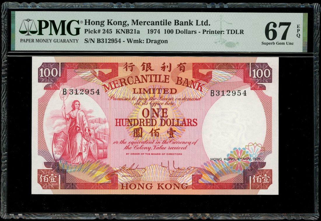 Mercantile Bank Limited, $100, 4.11.1974, serial number B312954, (Pick 245), PMG 67EPQ Superb Gem Uncirculated