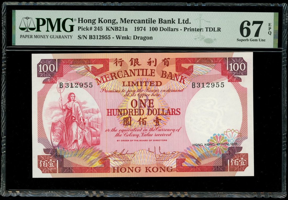 Mercantile Bank Limited, $100, 4.11.1974, serial number B312955, (Pick 245), PMG 67EPQ Superb Gem Uncirculated
